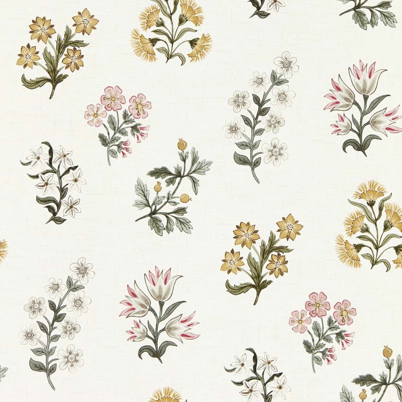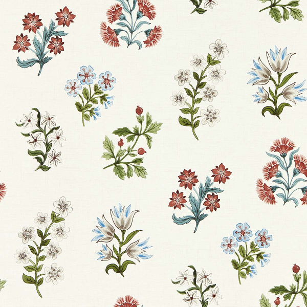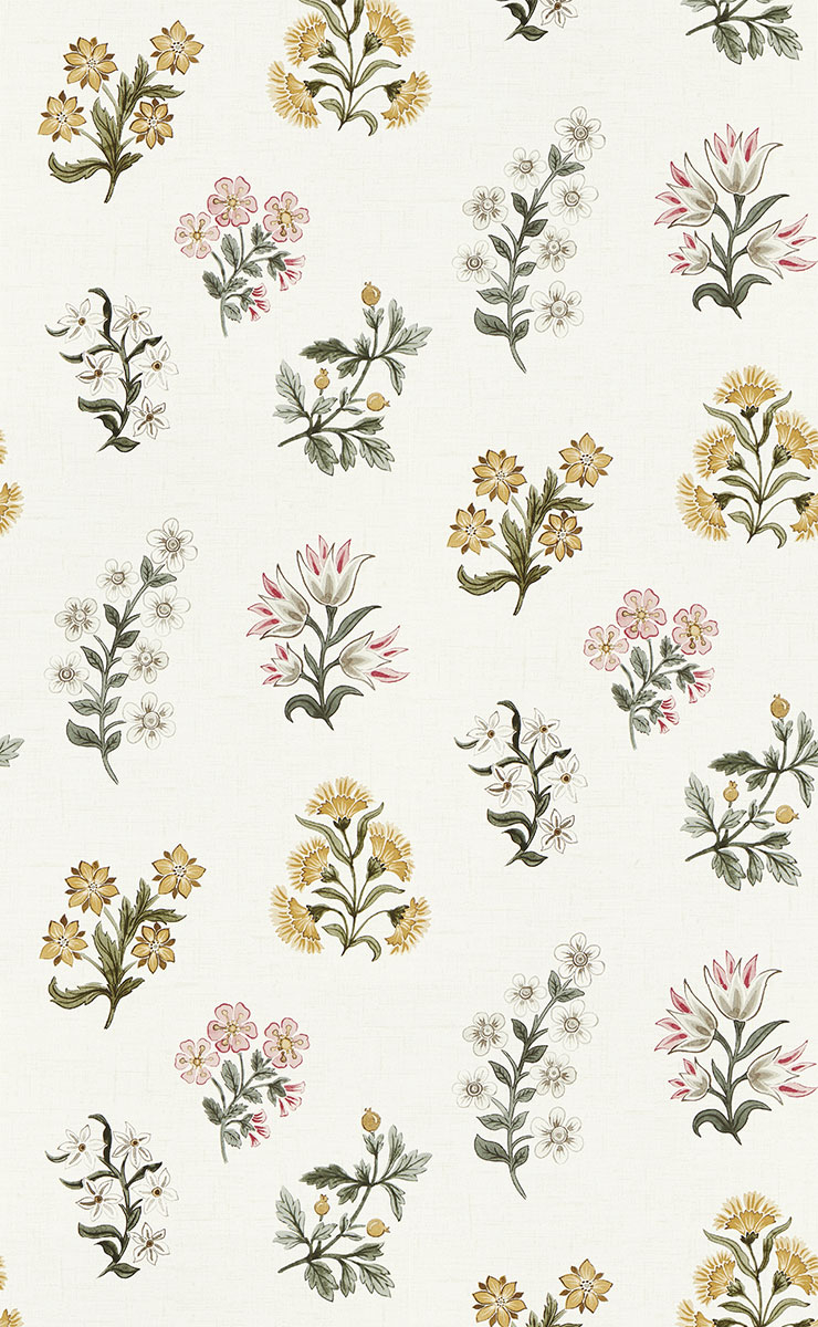 Le papier peint Leiden est l’hommage de Clarke & Clarke au plus vieux jardin botanique des Pays-Bas. Il illustre des petites fleurs aérées, inspirées des millefleurs médiévales et des miniatures du XVIIe siècle. Les figures sont disposées de façon à créer des lignes diagonales abstraites sur un fond pastel texturé. Ces axes, soulignés par l’arrangement des couleurs, apportent du dynamisme à l’ensemble.