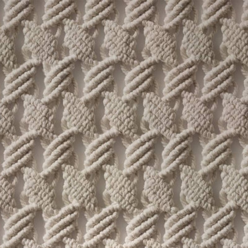 Avec le papier peint Désert d’Uyuni, Koziel magnifie les intérieurs avec le charme du macramé. Les cordes se marient les unes aux autres pour créer une symphonie de figures captivantes. Ce trompe-l'œil, imaginé par l’artiste française Laurentine Perilhou, se dévoile dans un camaïeu de nuances douces et naturelles.