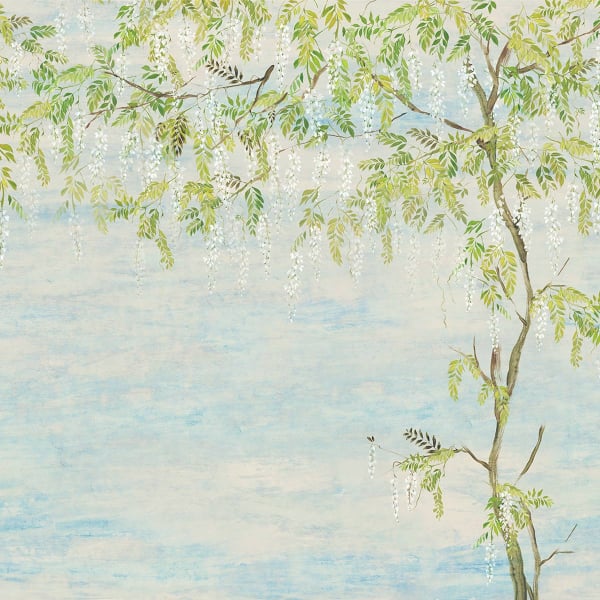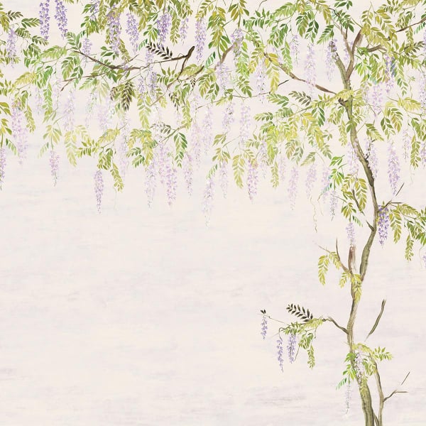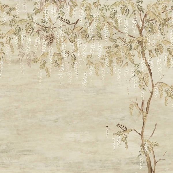 Paré de Patio, l’intérieur se métamorphose en refuge où la quiétude est le mot d’ordre. Il affiche un arbre à l’allure d’une majestueuse wisteria, déployant ses feuillages et ses fleurs délicates vers le firmament. Créé par la maison Masureel, ce papier peint panoramique est une invitation à la détente et à la contemplation.