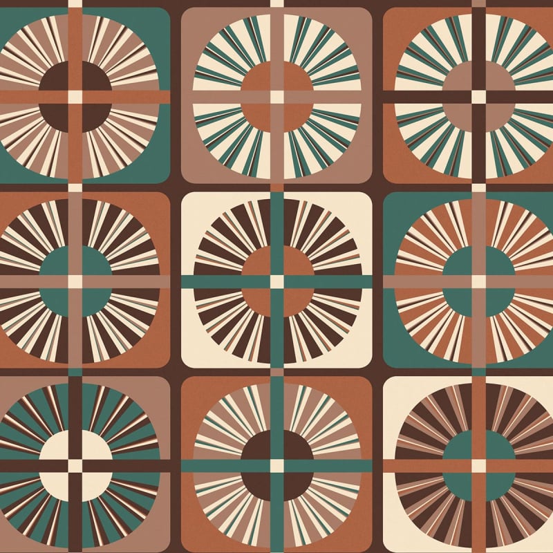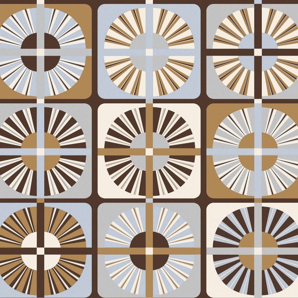 Le papier peint Ray de Masureel s'inspire de la technique Pietra dura, où l'incrustation de pierres crée des dessins géométriques solaires. Des cercles rayonnants, aux effets brillants et mats, composent ce design méditerranéen. Proposé dans des teintes chaleureuses, ce décor mural transforme les espaces de vie en havres de lumière et de chaleur.