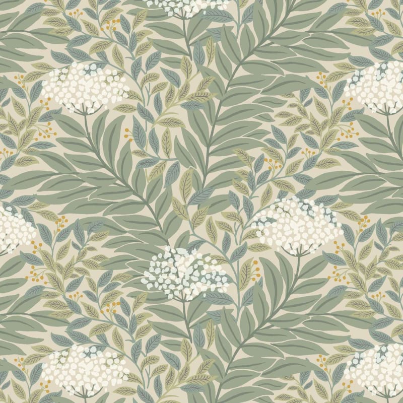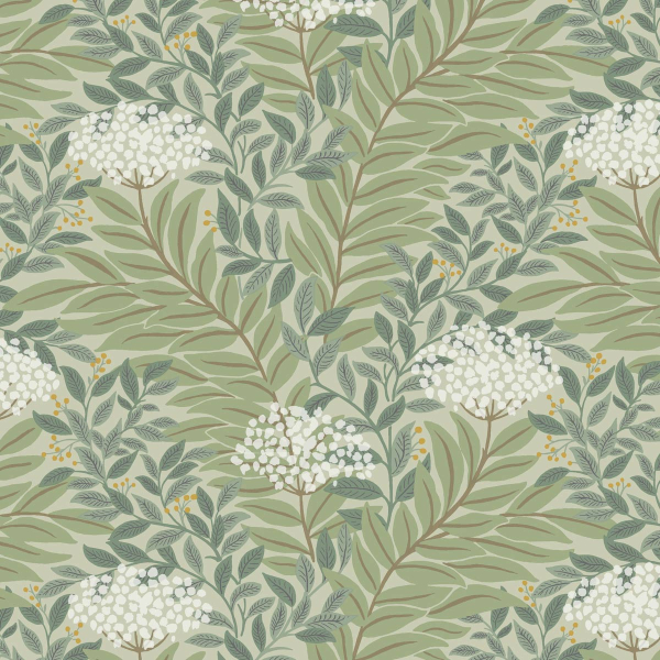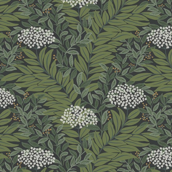 L’intérieur s’anime sous l’effet rafraîchissant de Highgrove, tel un zéphyr printanier parmi les champs verdoyants. Des dentelles de la reine Anne émergent gracieusement sur son foisonnement de feuillages. Rifle Paper Co a imaginé une symphonie de nuances légères et intenses pour ce papier peint.