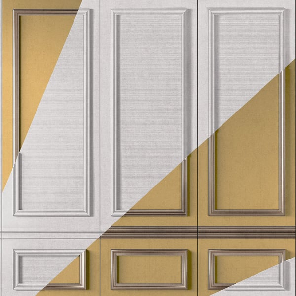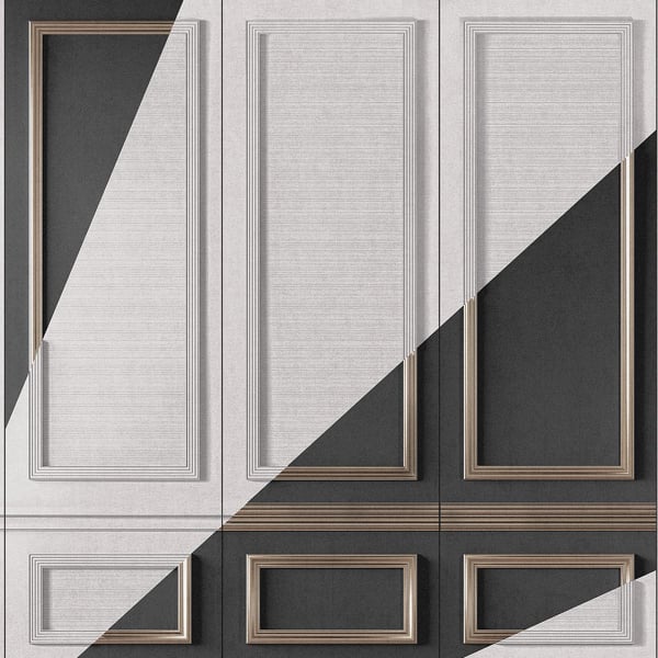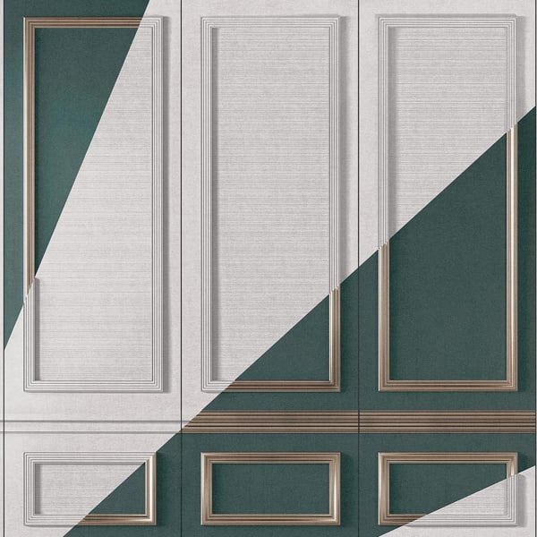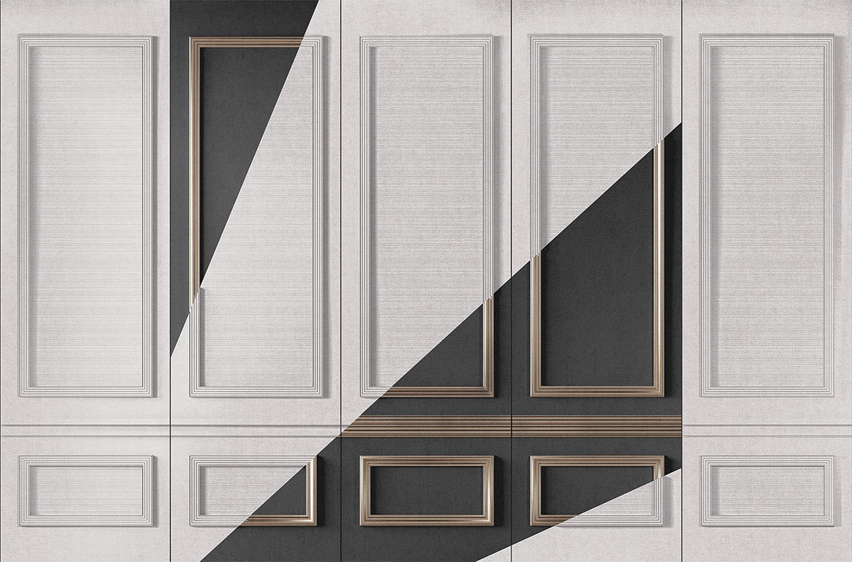 En collaboration avec le studio AquiliAlberg, London Art conçoit le papier peint panoramique Boiseries Intersection, un design géométrique contemporain. La composition joue habilement sur les contrastes, où des surfaces texturées et lisses se rencontrent. Les panneaux blancs, ornés de délicates moulures, sont sillonnés par des figures angulaires au ton contrasté. D’inspiration art déco, cette création invite à explorer l'espace avec un regard neuf.