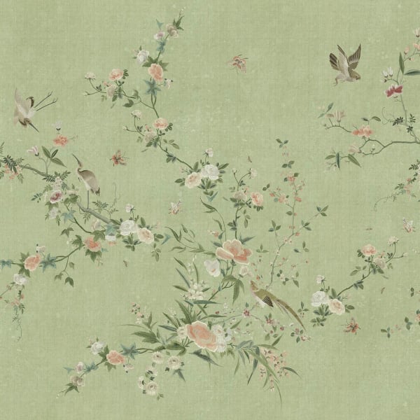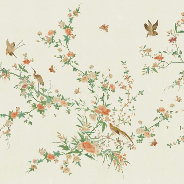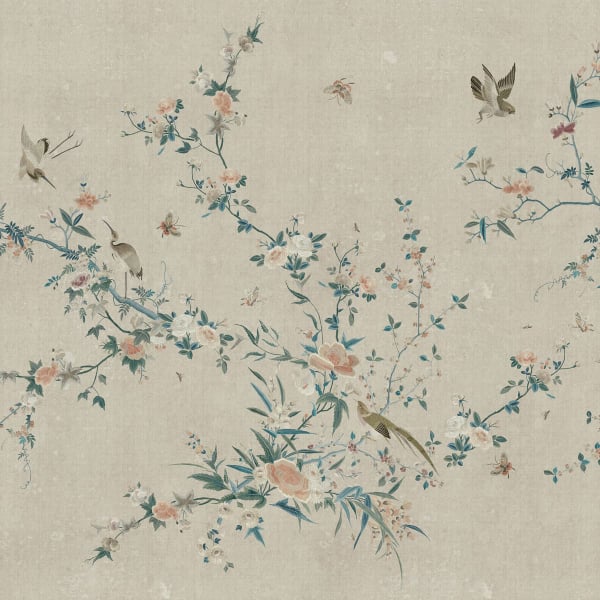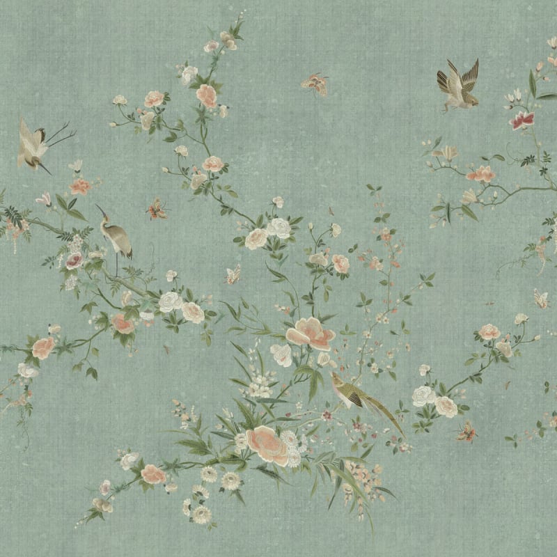 Bloom, un papier peint panoramique de Sandberg, arbore une riche palette sur fond crayeux. Il métamorphose les murs avec la magie du printemps, mettant en scène des branches en fleurs et des oiseaux. Les figures prennent vie et s’épanouissent vers le plafond, plongeant les espaces au cœur d’une nature fleurie.