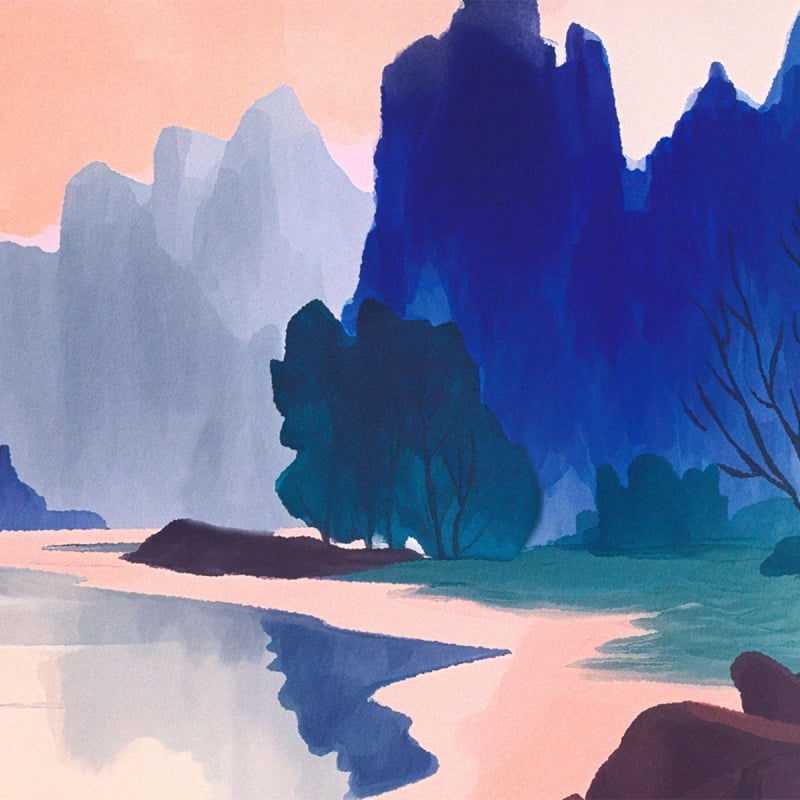 Le papier peint panoramique Aurora embrase les espaces avec l’éclat de ses aplats de couleurs franches. Il illustre les premières lueurs du jour qui s’élèvent derrière les montagnes infinies, traversent la rivière et avancent vers une forêt nocturne. Le fort contraste entre les teintes éveille le mur, tandis que les figures elles-mêmes sont synonyme de renouveau. L’atmosphère devient alors plus inspirante, comme une source inépuisable d’ondes positives.