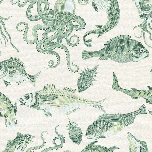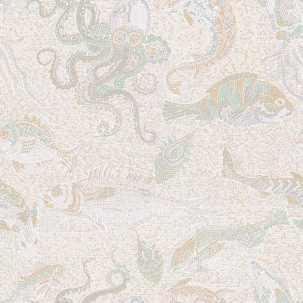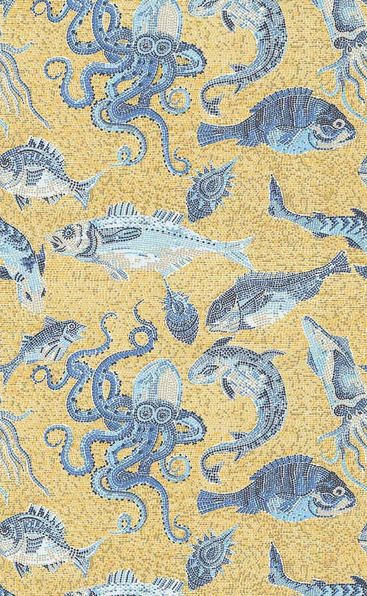 Mikonos, un papier peint de Jannelli & Volpi et Scalamandré, plonge le regard dans le monde mystérieux des fonds marins. Ses mosaïques en relief révèlent une symbiose fascinante entre poissons, pieuvres et autres créatures. Une palette de teintes chatoyantes sublime cette pièce pleine de vie, rehaussant l’intérieur avec raffinement.