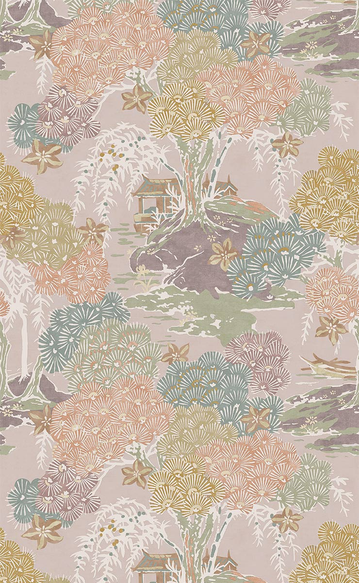Sea of Trees, un papier peint inspiré d’une chinoiserie, propose une interprétation artistique d'une forêt exotique. La silhouette de maisonnettes se dessine discrètement derrière des arbres et végétaux luxuriants. Éditée par Scalamandré et Jannelli&Volpi, cette pièce inonde l’espace de la douceur rafraîchissante de la nature. Ses teintes tendres et chatoyantes reflètent la sérénité qui s’en émane.