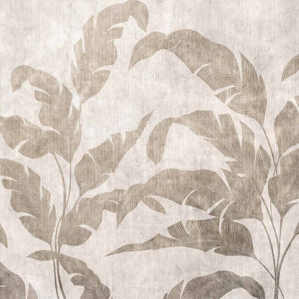 Leaves Shadow Leaves est un papier peint panoramique imbu d’exotisme créé par Coordonné. Il se démarque par le graphisme de ses bananiers, agitant gracieusement leur feuillage pour inviter la fraîcheur tropicale dans les intérieurs. Le raffinement des traits accentue les détails subtils des nervures, comme un dessin manuel sur du textile texturé. Cet aspect artisanal inspire la sympathie, une sensation redoublée par l’effet apaisant de la palette monochrome.