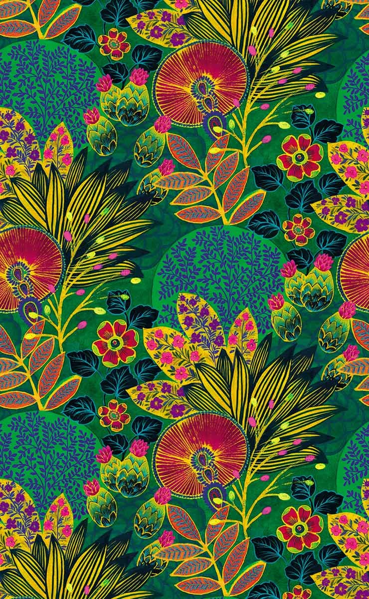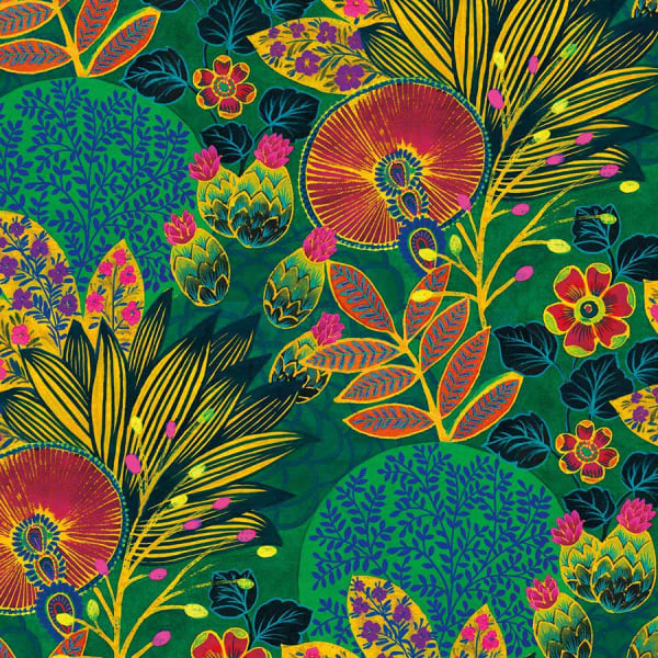 Lithops de Jannelli & Volpi dévoile un monde végétal où des feuillages exubérants et des fleurs stylisées s'entrelacent en harmonie. La richesse des détails semble donner vie aux dessins, animant l’intérieur d’une gaieté sans pareille. Qu’elle soit polychrome ou monochrome, cette pièce charme le regard, invitant à une évasion vers des contrées lointaines.