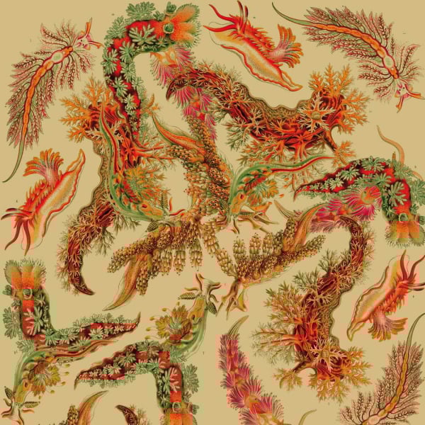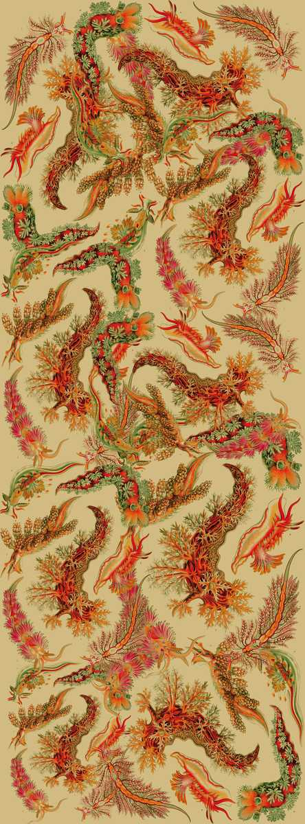 Signé Labo Léonard, le papier peint panoramique Aquavitam dévoile un univers aquatique enchanteur, où chaque détail évoque la richesse des profondeurs marines. Nudibranches, coraux raffinés et créatures mythiques s'entrelacent dans une danse graphique, tissant une fresque fantastique et onirique. Les couleurs profondes, contrastées par des fonds clairs ou sombres, subliment cette création et lui confèrent un éclat hypnotique.