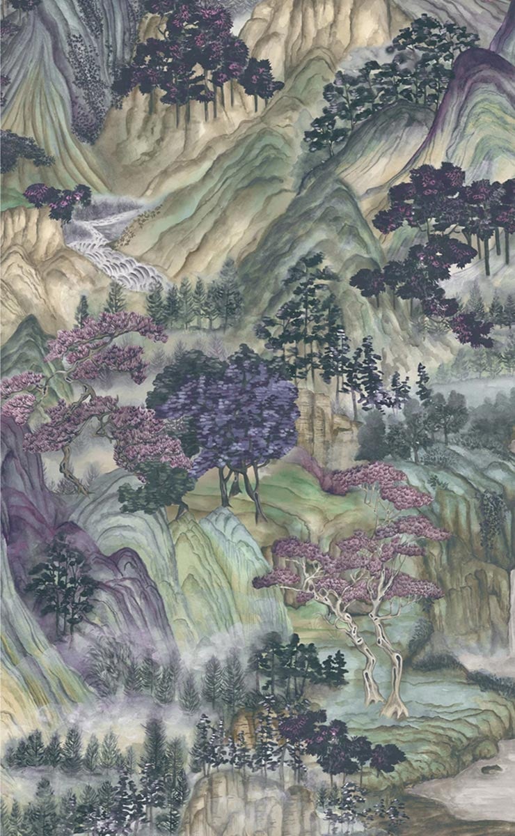 Inspiré des œuvres de Tani Bunch?, Mountainscape capture l'essence des paysages japonais, notamment ceux de Kyoto à Tokyo. Il pare les murs de montagnes majestueuses, de cours d'eau sinueux et de jardins conviant à la contemplation. Une profondeur artistique saisissante émerge entre les détails délicatement peints à la main. Créé par Cole&Son, ce papier peint instaure une atmosphère paisible et sereine dans les intérieurs.