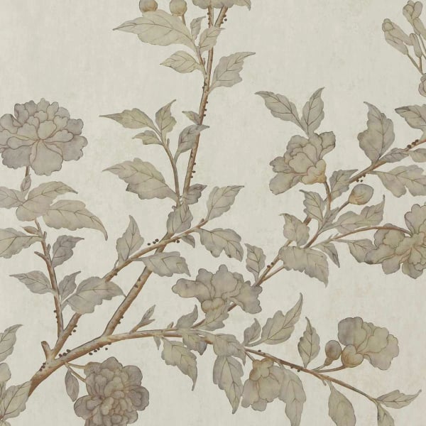 Moor Park de 1838 évoque la délicatesse des peintures chinoises anciennes. De petits oiseaux virevoltent et trouvent refuge sur ses branches fleuries. La finesse des détails et l’alliance des nuances tendres et intenses accentuent l’atmosphère sereine qui s’en émane. Ce papier peint panoramique transforme les murs en fresques vibrant de poésie.