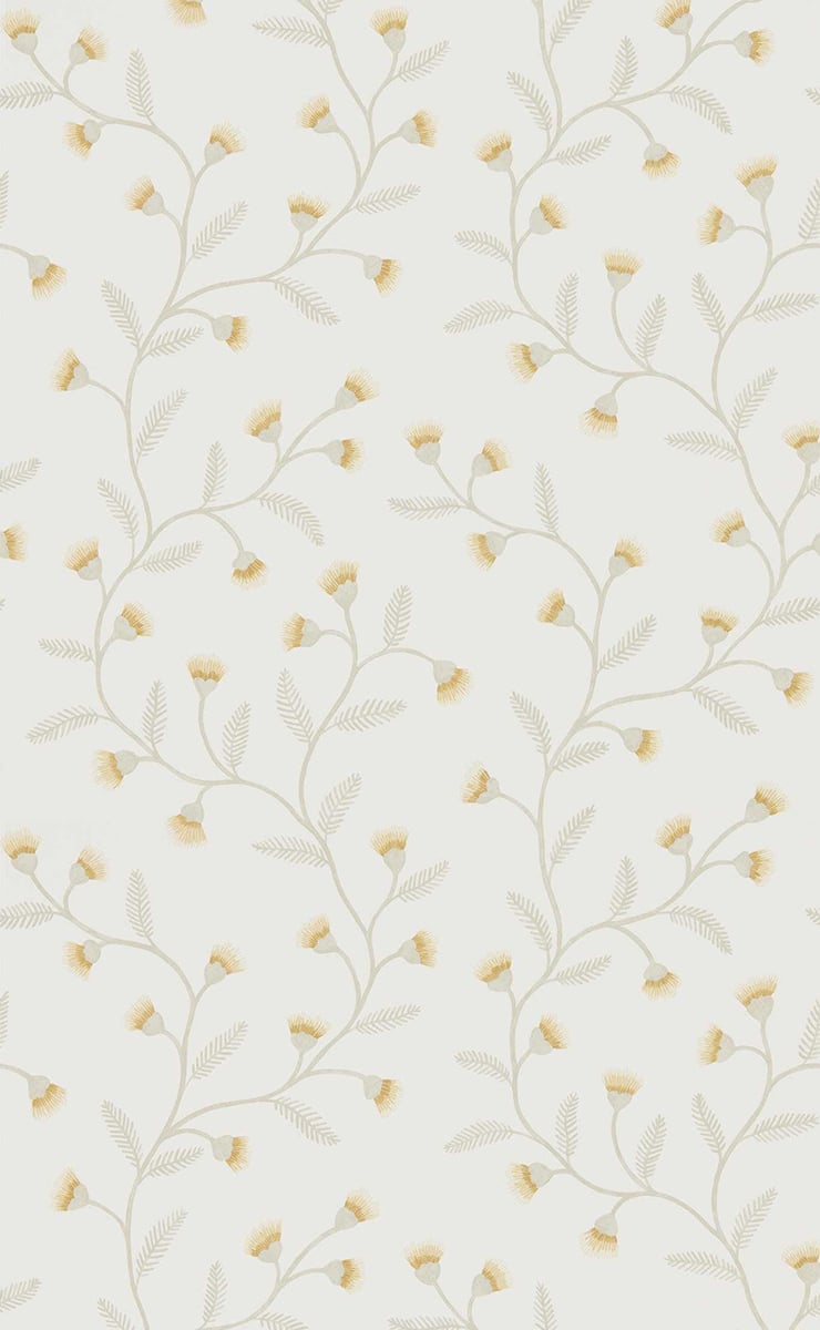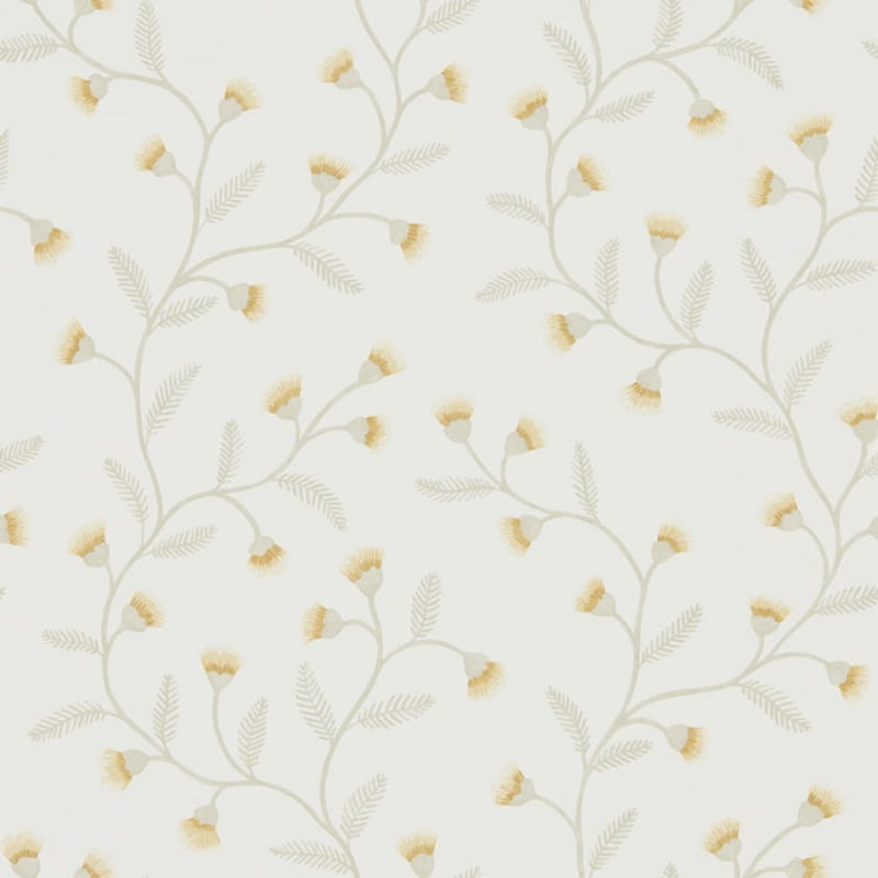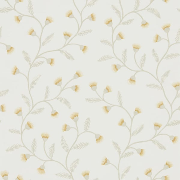 Le papier peint Everly illustre avec poésie la grâce d’une camomille sauvage en pleine floraison. Ses tiges sinueuses s’élèvent avec légèreté, portant des fleurs épanouies aux pétales fins et vaporeux. Le feuillage subtilement dessiné confère au décor un caractère organique et aérien. Signé Sanderson, ce motif végétal capture la délicatesse d’un jardin empreint de quiétude.
