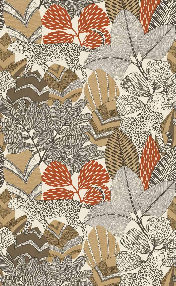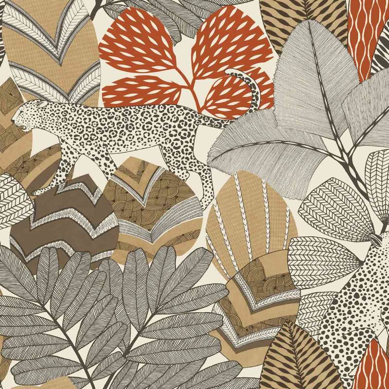 Le papier peint Namiri de York Wallcoverings dépeint sur les murs la vie paisible de félins majestueux dans leur habitat naturel. Les feuilles exubérantes se révèlent dans un charme graphique et tribal. Le travail minutieux des détails transforme chaque dessin en motif à part entière. L’ensemble se dévoile dans une harmonie de couleurs tendres et vibrantes.