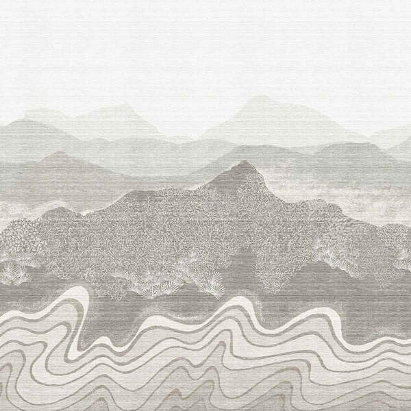 Le papier peint panoramique Nebula ouvre les murs sur l'infini d'un paysage lointain, baigné de poésie. Les montagnes déroulent leurs courbes à perte de vue, tandis que l'océan scande, au rythme effréné de ses vagues, l'ancrage du monde. L’imitation lin qui parachève l’ensemble confère à cette création de Masureel un charme graphique.