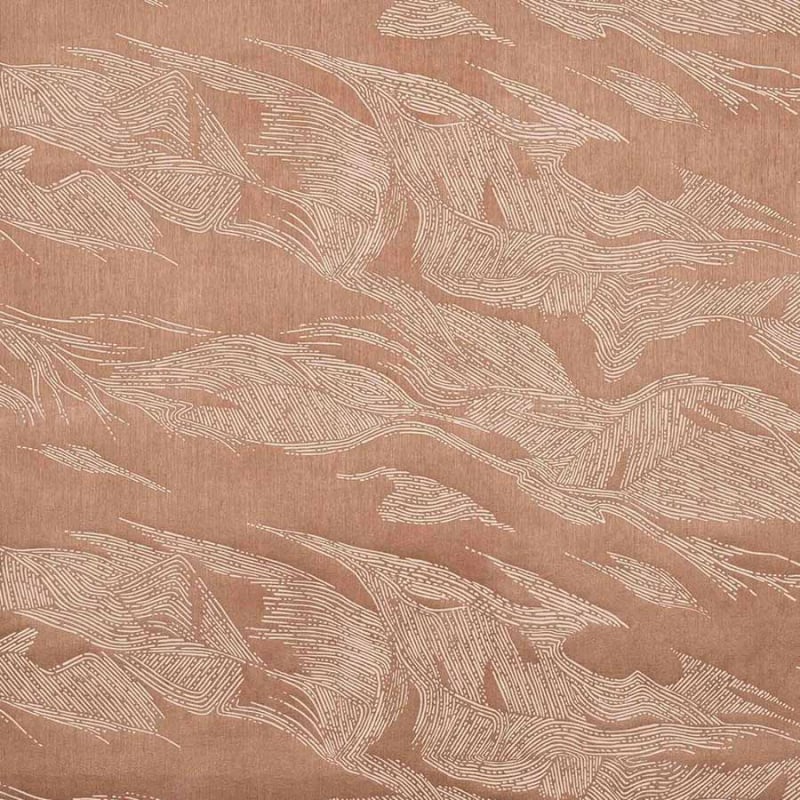 The Ribera wallpaper explores the contours of an abstract pattern, inspired by the movement of waves or the reliefs of a stylized landscape. Each line, originally engraved by hand, brings the decor to life with its charming imperfections. The matte ink print delicately contrasts with a threaded background that changes with the light. This Larsen creation combines graphic know-how and visual poetry.
