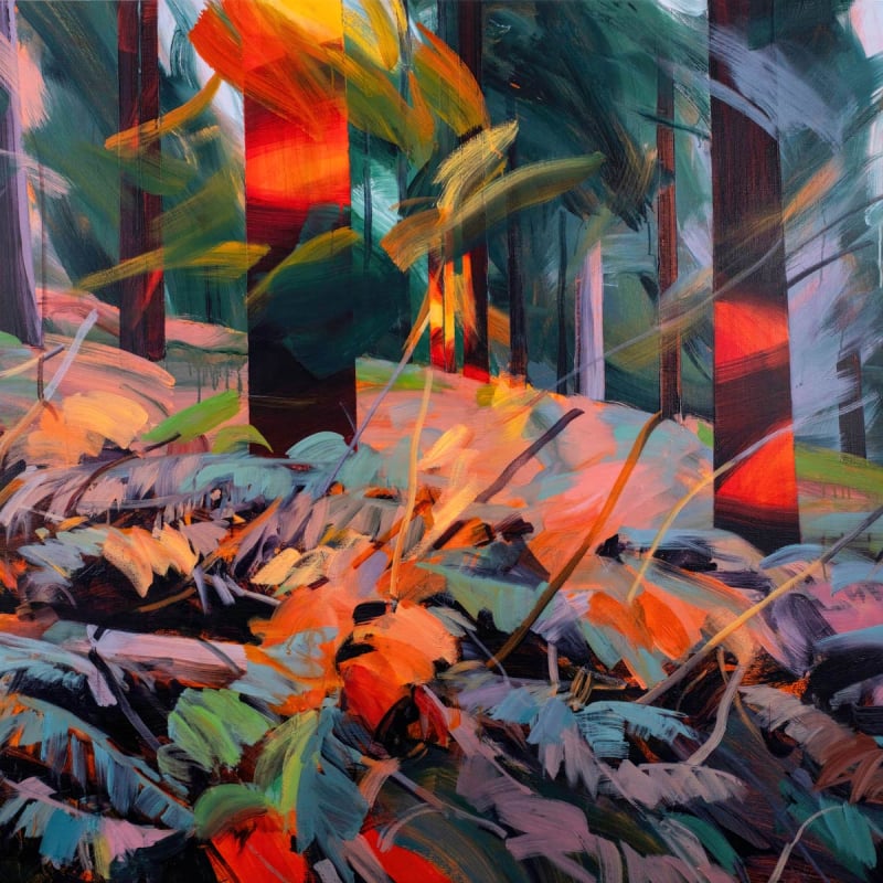 L'Appel de la forêt est un panorama mural qui reproduit une œuvre d'Olivier Morel. Ce décor nous transporte dans une forêt baignée de lumière, loin de toute agitation. Le regard s'attarde sur les troncs élancés, le jeu des couleurs franches et les contrastes dans l'ombre du sous-bois. Tout ici suggère le calme d'un monde intact, mais aussi sa vitalité. Ce paysage, imprimé en haute définition sur un support intissé épais et mat, est une invitation à retrouver une forme simple et essentielle de lien avec la nature.