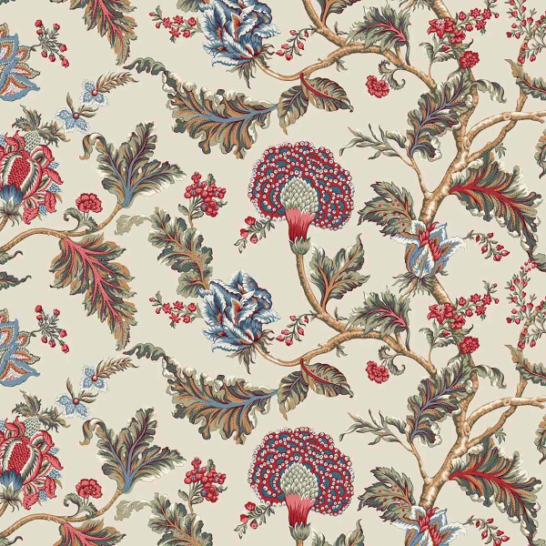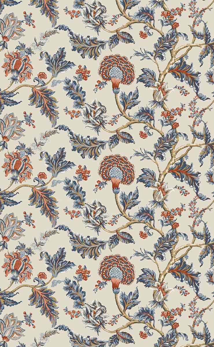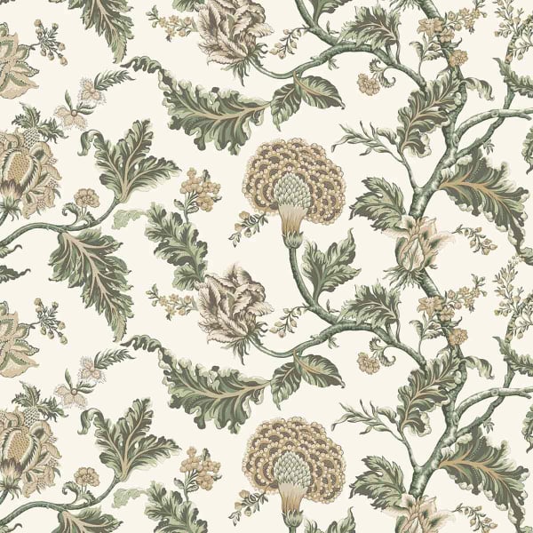 Le papier peint Monroe déploie un motif floral jacobéen, fait de feuilles luxuriantes et de fleurs aux multiples couches. Les branches sinueuses tracent un chemin libre, dans une composition végétale aux proportions impressionnantes. Chaque détail révèle une grande finesse de dessin. Ce revêtement signé York Wallcoverings évoque les ornements des anciens textiles décoratifs.