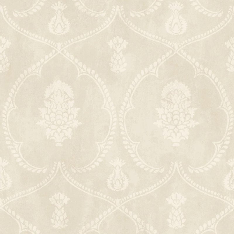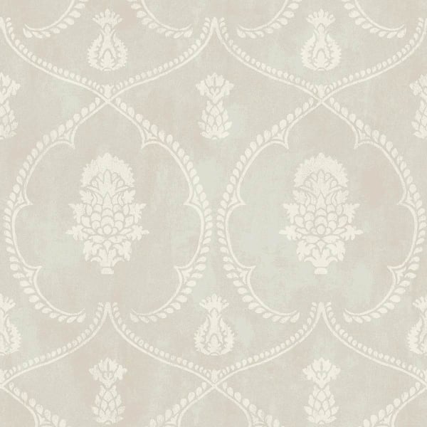 Signé York Wallcoverings, Royal Damask est un papier peint à motif floral stylisé organisé suivant une trame ornementale authentique. Des médaillons botaniques, enfermés dans des arabesques, évoquent les grands codes décoratifs classiques. Ce revêtement capte le regard par la répétition maîtrisée des formes dans une structure aux accents raffinés.