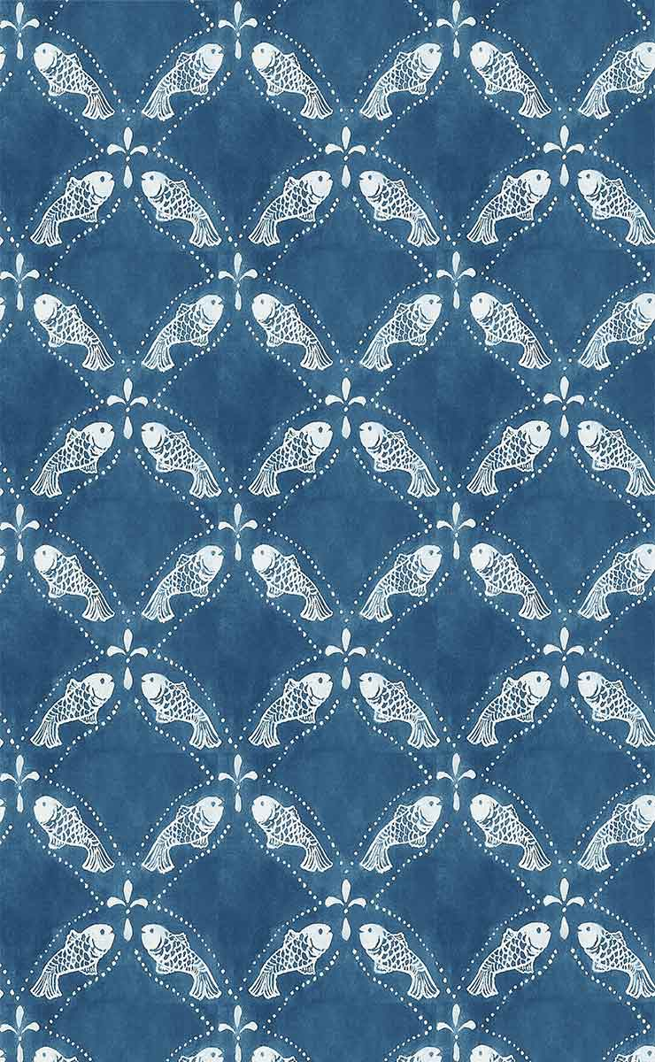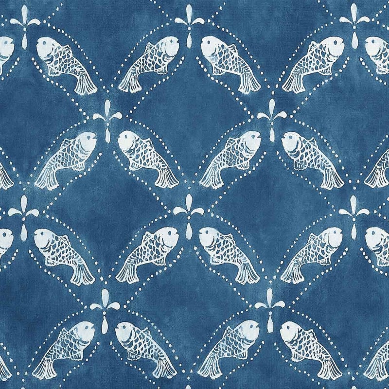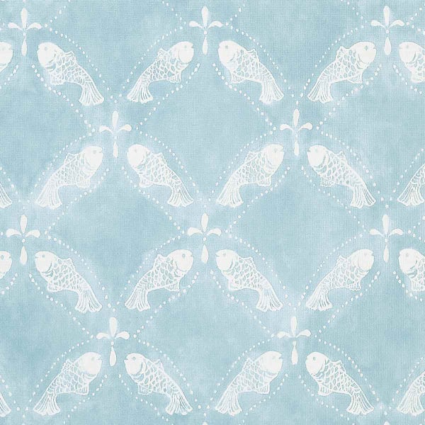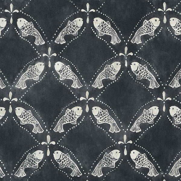 À travers un motif à la fois animalier et géométrique, le papier peint Santorini revisite l’univers aquatique. Des poissons minutieusement dessinés à la main, s’alignent en quinconce dans un treillis ornemental ponctué de gouttelettes stylisées. L’ensemble évoque une gravure artisanale, empreinte d’un rythme apaisant. Thibaut compose un tableau imaginaire fondé sur les contours et la légèreté graphique.