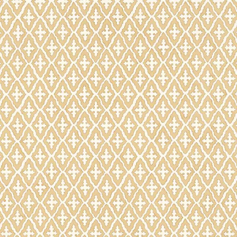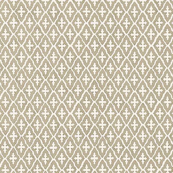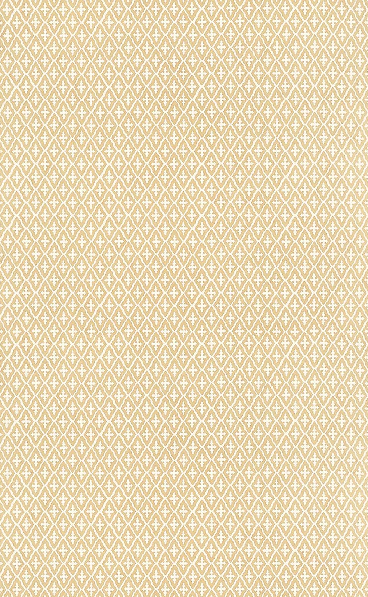 Le papier peint Lindsey déploie un motif géométrique, structuré par des losanges réguliers. Chaque forme abrite un emblème ornemental, inspiré des impressions à bloc. L’alignement méticuleux des figures donne naissance à une composition délicate qui crée un effet visuel de grille. Ce revêtement signé Thibaut évoque une harmonie entre rigueur symétrique et finesse artisanale.