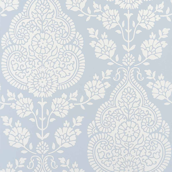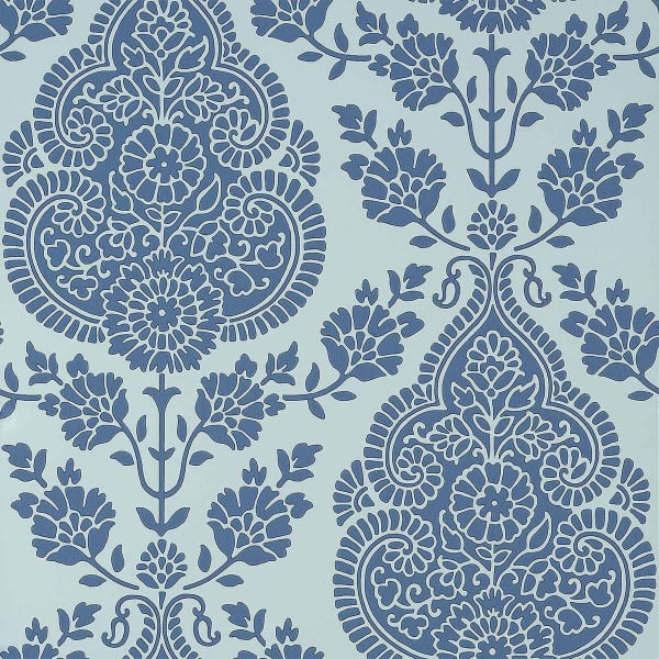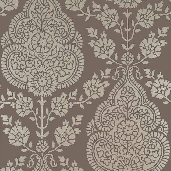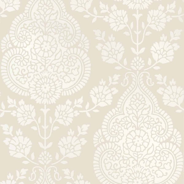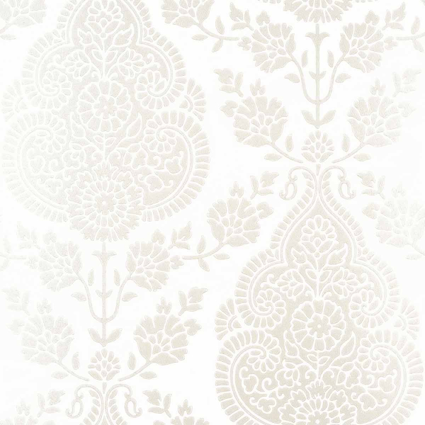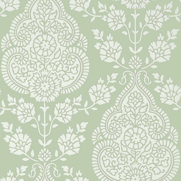 Le papier peint Balmuccia Damask transpose l’élégance d’un ancien textile signé Thibaut en une composition murale majestueuse. Un motif damassé, réinterprété avec finesse, se déploie sur un fond uni. Des arabesques florales s’épanouissent en médaillons verticaux, ornés de bouquets stylisés. Les éléments graphiques structurent l’ensemble avec des détails précis et maîtrisés.