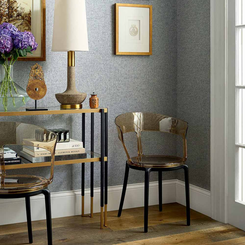 Clarkson Weave est un revêtement mural au motif texturé, tissé avec des fils de papier épais serrés. Sur sa surface, chaque fibre contribue à une sensation de matière à la fois brute et travaillée. Les grains irréguliers enveloppent les murs d’une profondeur apaisante. Ce décor signé Thibaut insuffle un rythme discret, où la structure devient langage.