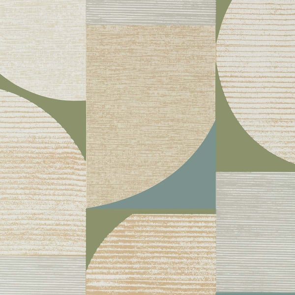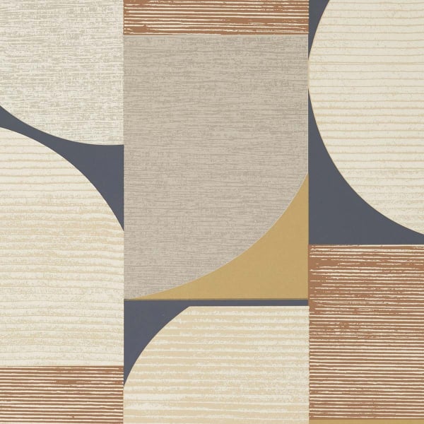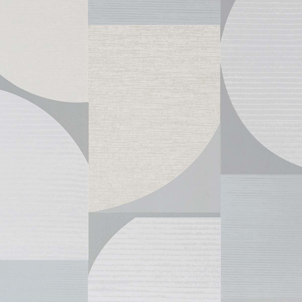 Une composition géométrique au graphisme affirmé s’étend sur la surface du papier peint Saturn. Des demi-cercles, carrés et segments se superposent avec équilibre, dans un agencement qui rappelle une peinture cubiste. Les formes aux textures hachurées contrastent avec des zones pleines et créent un effet de relief discret. Thibaut propose une lecture esthétique ancrée entre mémoire et modernité.