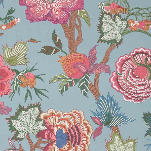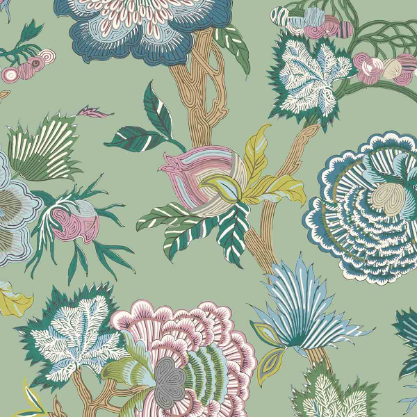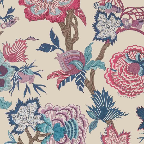 Le papier peint Indienne Jacobean se distingue par son design inspiré du motif jacobin et des indiennes, signé Thibaut. De grandes fleurs stylisées se mêlent à un feuillage dentelé et à des branches souples, formant une composition harmonieuse. L’impression traditionnelle met en valeur la précision des contours et la richesse des détails. L’ensemble évoque un décor raffiné où nature et ornement se rejoignent avec équilibre.