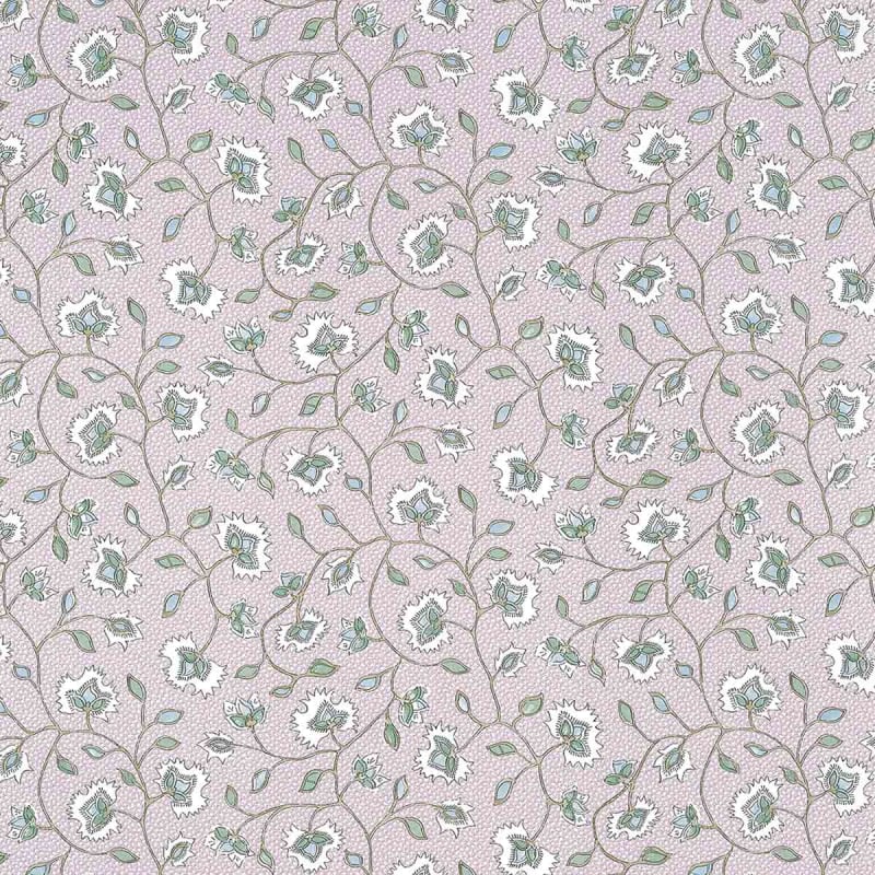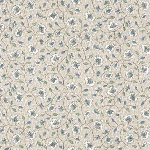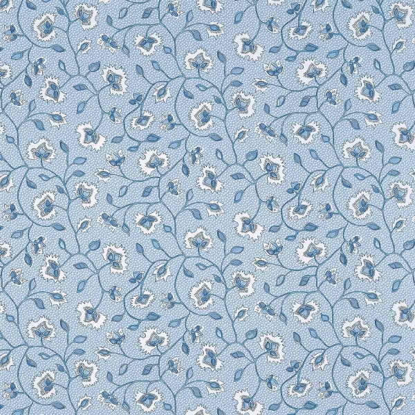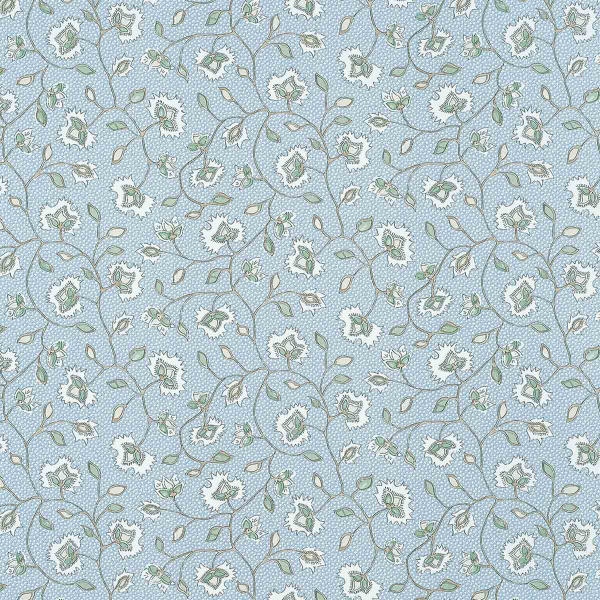 Des tiges ondulantes, ponctuées de fleurs et de petites vignes serpentent le papier peint Chelsea. Le motif floral aux contours finement ciselés s’inspire d’un savoir-faire textile africain. Les éléments se déploient avec régularité sur un fond orné de points discrets. Ce revêtement mural signé Thibaut propose une interprétation graphique et maîtrisée du végétal.