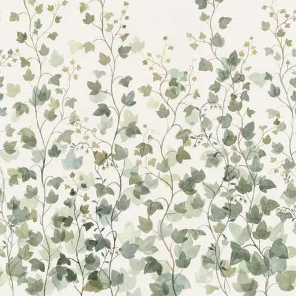 Le papier peint Ivy de Sandberg arbore un motif végétal, où des tiges grimpantes parsemées de feuilles légères donnent une impression de verdure conviviale. Peint à l’aquarelle, le dessin joue sur la transparence et la superposition des feuillages pour créer une belle sensation de profondeur. Sur la partie supérieure, le décor s'allège doucement, puis laisse glisser la lumière entre les vides pour illuminer la pièce.