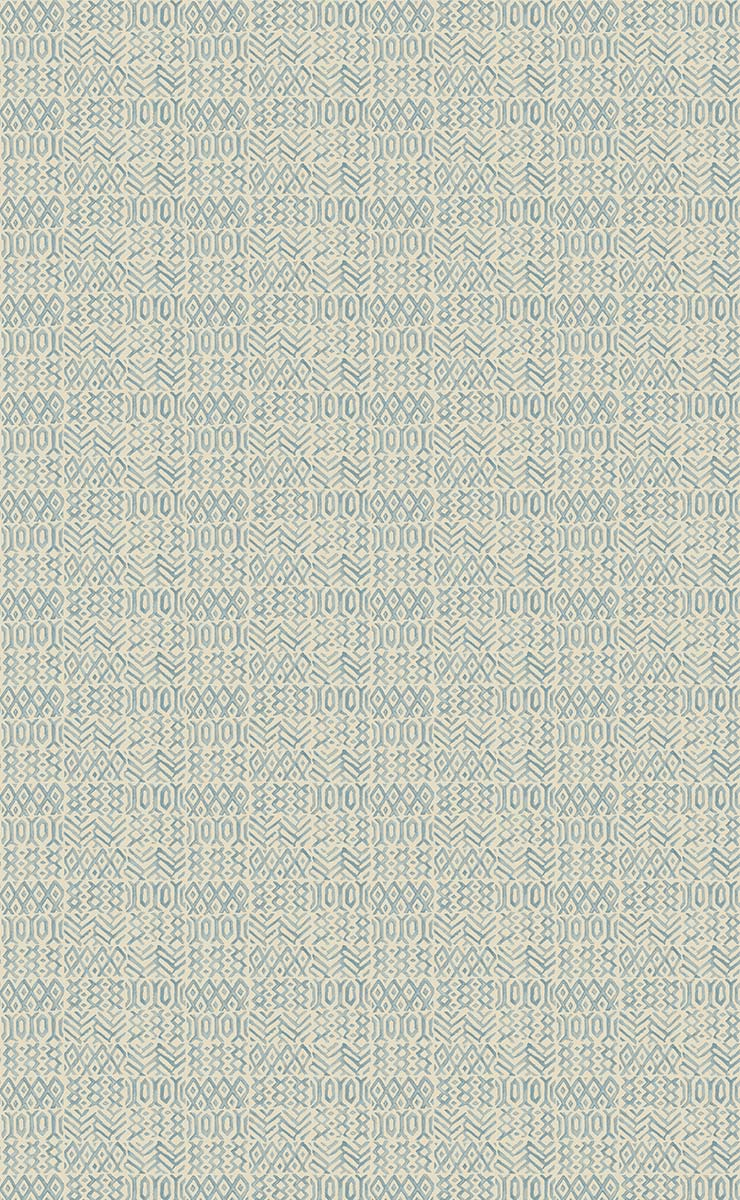 Le papier peint Chimneys, signé GP & J Baker, s'inspire des trames textiles anciennes. Son motif géométrique associe chevrons, losanges et lignes verticales qui s’entrelacent dans une composition dense et équilibrée. Chaque figure s’enchaîne naturellement à la suivante, dessinant un rythme visuel régulier. Le contraste subtil entre les tons donne à l’ensemble une profondeur rythmée sans surcharge.