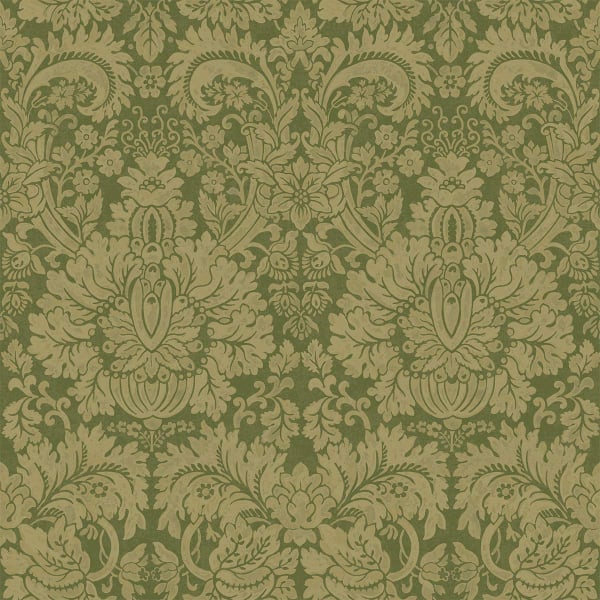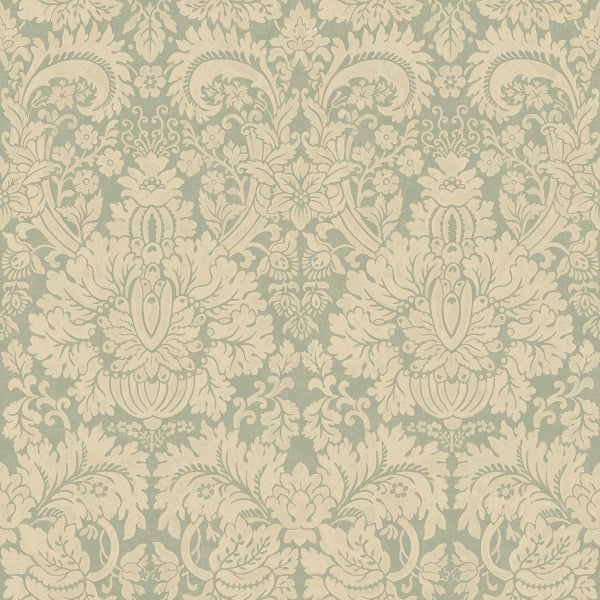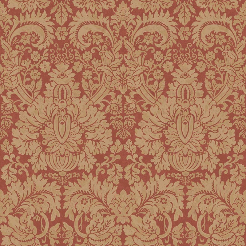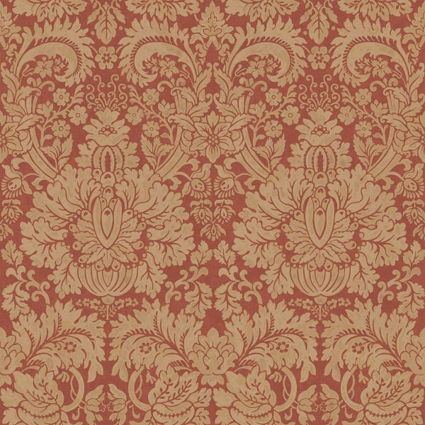Queen’s Damask est un papier peint à motif damas, inspiré des décors somptueux des intérieurs d’antan. Son dessin symétrique, issu d’une œuvre peinte à la main, dévoile de grandes fleurs stylisées entourées de feuillages denses et de volutes baroques. Le jeu d’ombre entre fond et ornement crée une profondeur visuelle saisissante. Chaque détail révèle le savoir-faire de GP & J Baker.
