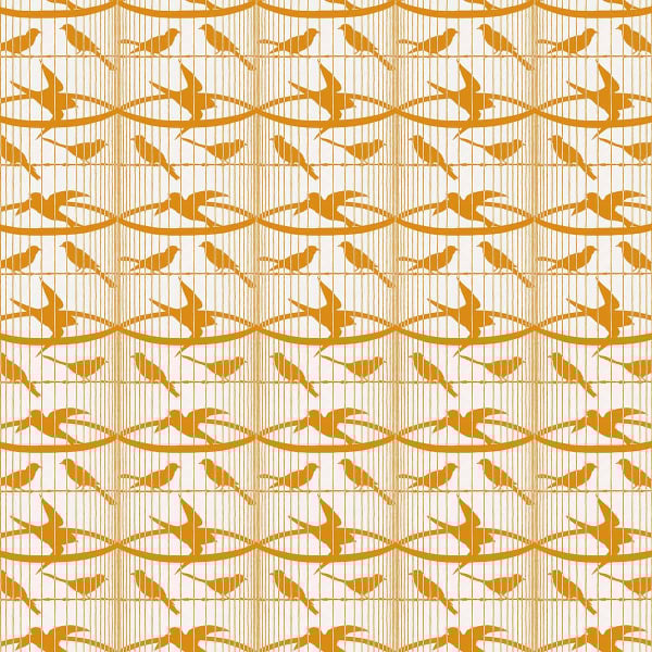 Une alternance graphique d’oiseaux, tantôt perchés, tantôt en vol, se déploie sur le papier peint Gabbia d’Oro. Le motif figuratif forme des frises horizontales sur un fond de lignes et de courbes régulières. Créée par Inkiostro Bianco, cette composition murale évoque la légèreté d’un dessin simple et naturaliste.