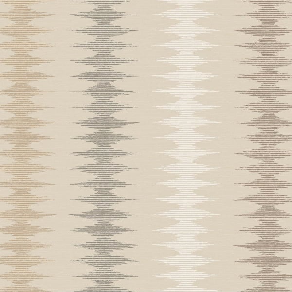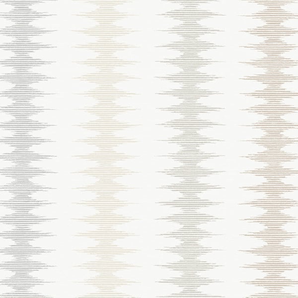 Woven Desert è una carta da parati strutturata da un motivo geometrico a zig-zag, organizzato in colonne verticali. Simili alle onde, le forme regolari creano un effetto di vibrazione calmo e ripetitivo. Alcune strisce dentellate sembrano ricamate o disegnate a mano, ricordando la trama di un tessuto antico. York Wallcoverings propone qui una composizione grafica dal tracciato visivamente rilassante.