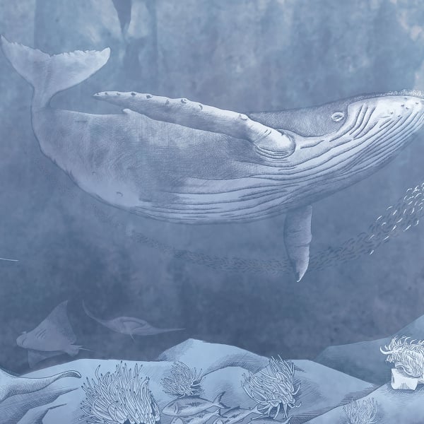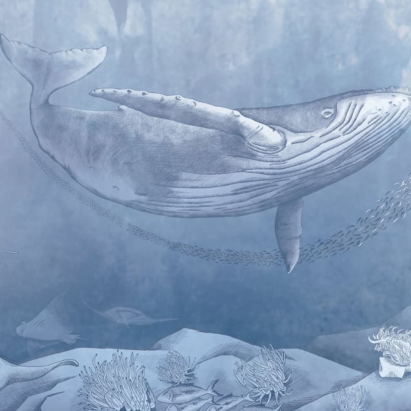 Pelagos plonge dans les profondeurs d’un monde marin vibrant de vie. Ce papier peint panoramique met en scène une majestueuse baleine glissant parmi les raies et les bancs de poissons. Le motif naturaliste se déploie sur un récif foisonnant de détails. Imprimée par Inkiostro Bianco, cette composition restitue avec précision la poésie des fonds océaniques.