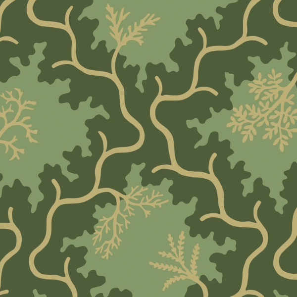 Signé Cole & Son, le papier peint Moss Trellis développe un motif organique ample, imaginé dans les années trente. Des formes végétales stylisées s’enlacent avec régularité dans une structure sinueuse, évoquant à la fois la nature et l’ornement. Le tracé, esquissé avec minutie, traduit une recherche de rythme et de mouvement. Disposé de façon symétrique, chaque détail révèle une précision maîtrisée.