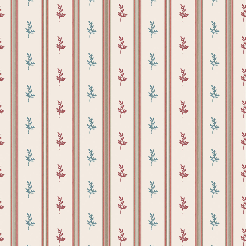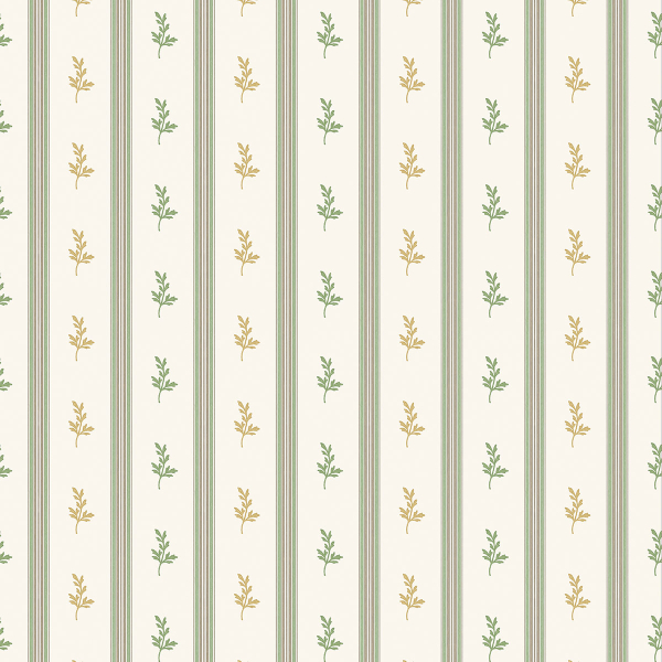 Sur le papier peint Anduze, des rameaux stylisés s’élèvent entre des rayures verticales régulières. Chaque tige, dessinée avec une simplicité graphique, alterne en orientation et en espacement pour instaurer un équilibre visuel. La répétition maîtrisée des feuillages s’inscrit dans un rythme délicat et champêtre. Cette composition signée Nina Campbell dévoile un motif botanique aux accents classiques.