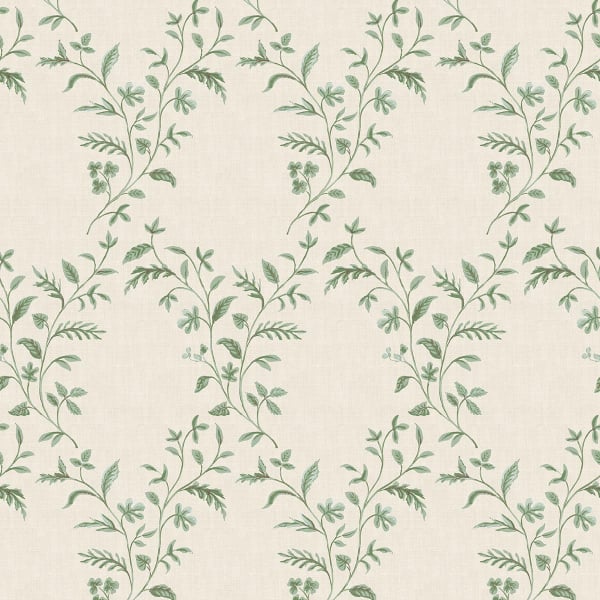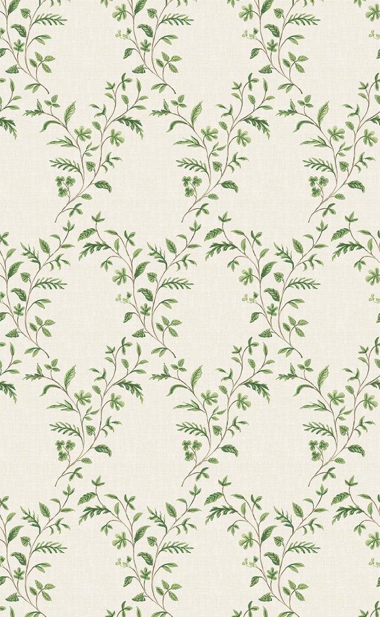 Hollingbourne Trellis est un papier peint au motif de treillis végétal imaginé par Nina Campbell. Des tiges fines s'y dressent en arabesques délicates dans une composition rythmée et fluide. Ponctuées de feuilles au tracé varié, les branches se dessinent librement et forment des lignes verticales souples. Chaque élément s’équilibre avec grâce dans un réseau aérien rappelant un jardin grimpant stylisé.