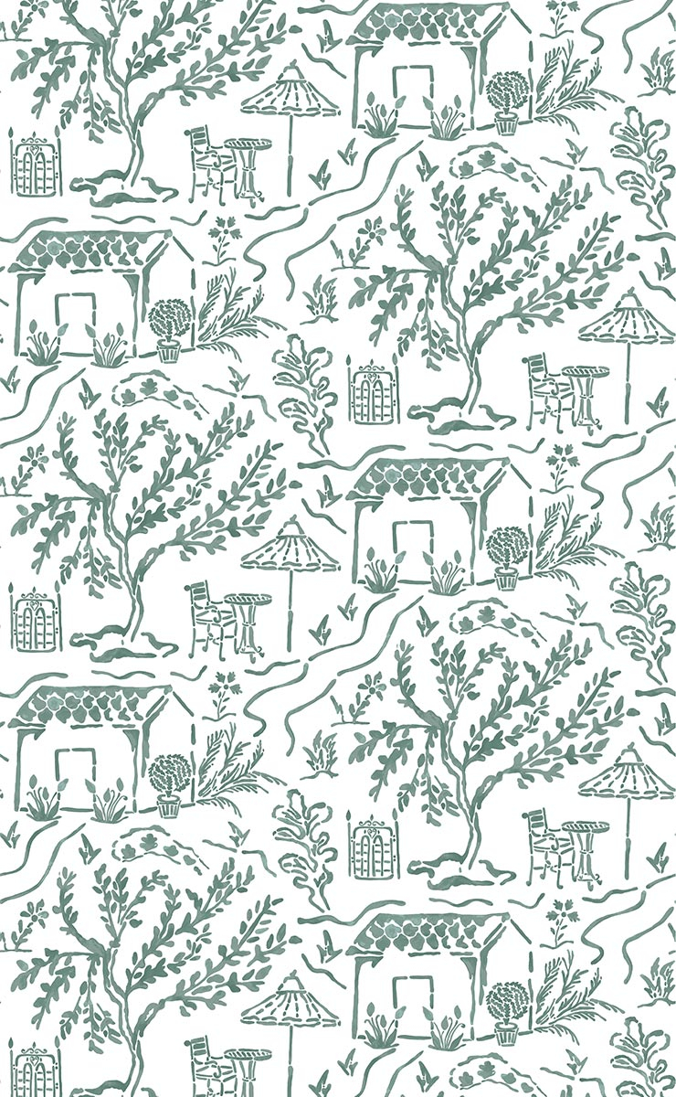 Le papier peint La Quintinie déploie un motif pictural inspiré d’un jardin empreint de poésie. Des allées sinueuses relient tonnelles abritées, tables oubliées sous les parasols et feuillages souples. L’ensemble esquisse une vision rêvée d’un parc romantique, baignée d’un calme apaisant. Cette création signée Nina Campbell évoque un ailleurs suspendu, tout en douceur.