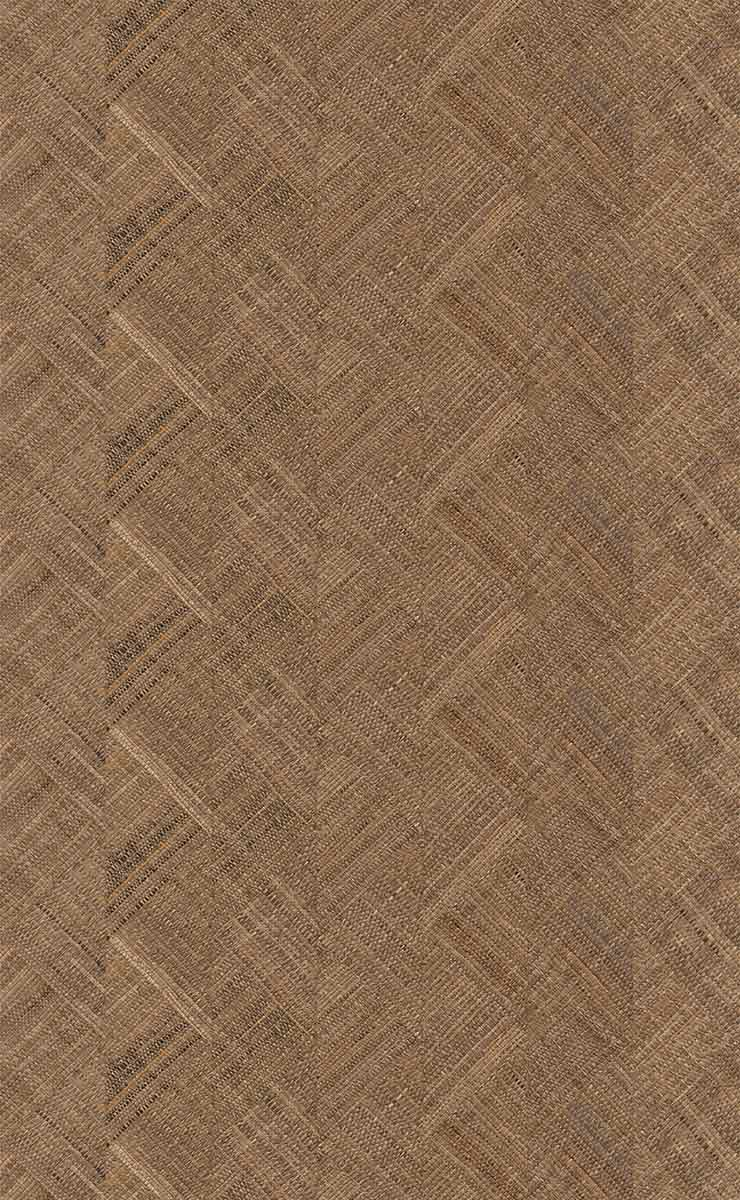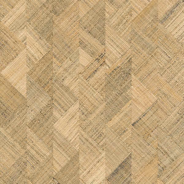 Le revêtement mural Rutile d'Arte expose de larges bandes de raphia tissé à la main, agencées en un motif géométrique structuré. L’alternance des directions dans la trame génère un léger mouvement visuel. Les nuances naturelles du matériau créent un relief, révélant la richesse du tissage et la singularité de chaque panneau.