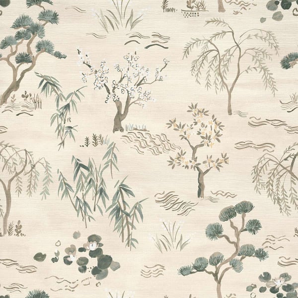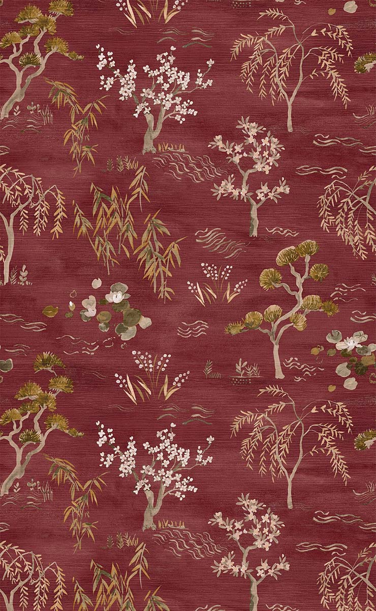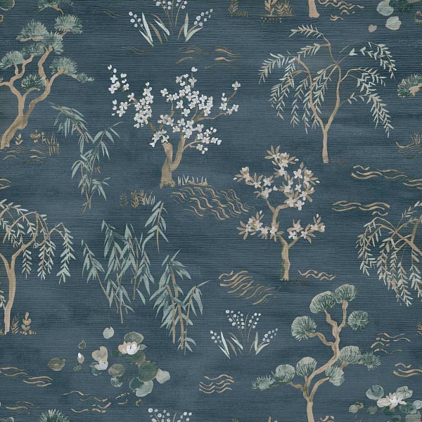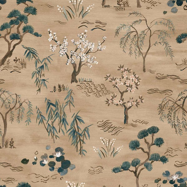 Sur une surface gaufrée au relief subtil, le papier peint Legendes déploie un motif botanique empreint de poésie. Des arbres feuillus et en fleurs se détachent avec délicatesse et rappellent les mythes japonais. De petites vagues finement tracées rythment la composition aux contours nets. L’impression sur un effet paille brossé renforce la profondeur de cette scène imaginée par Casamance.