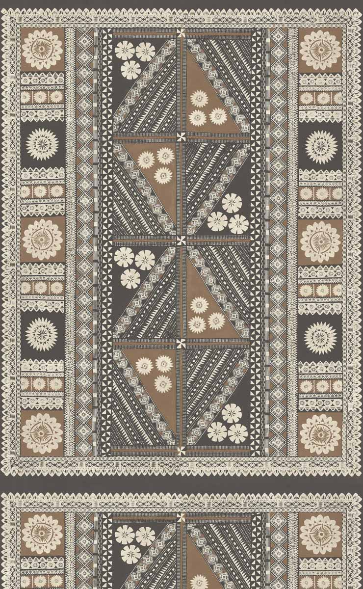 Le papier peint Tapa mural de York Wallcoverings emprunte aux tapisseries artisanales leur beauté sophistiquée. Figures florales et dessins géométriques fusionnent ici en une composition graphique teintée de fantaisie. Sa palette, mêlant teintes sourdes et délicates, enveloppe l’espace d’une harmonie feutrée, entre tradition rêvée et modernité discrète.