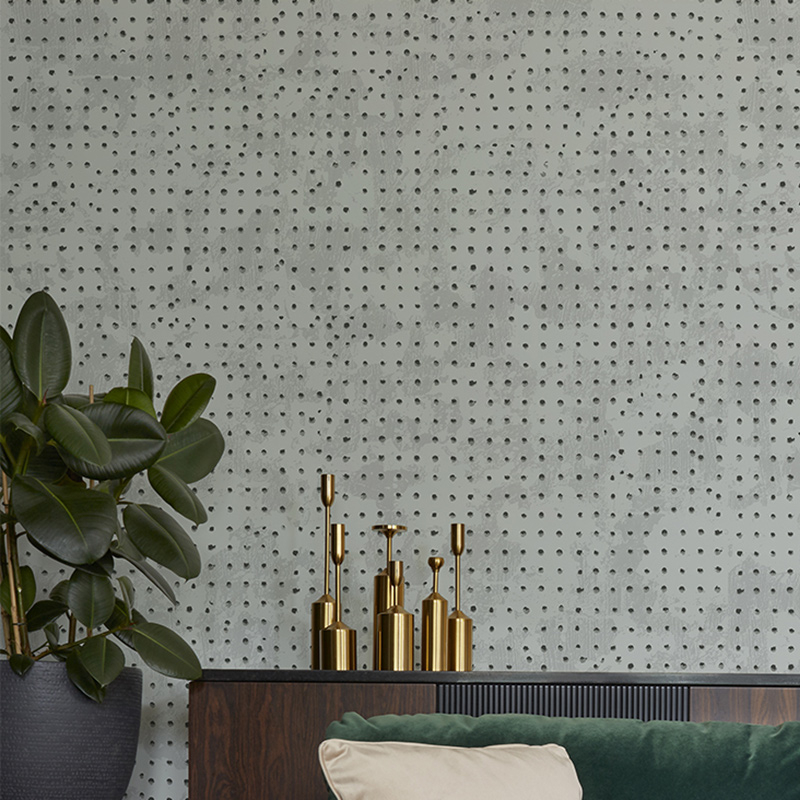 Die Panoramatapete Solo enthüllt ein sorgfältig strukturiertes abstraktes Muster, das aus einer Vielzahl von Punkten besteht. Das von Code entworfene geometrische Dekor ist das Ergebnis einer wiederholten manuellen Geste, die eine vibrierende Subtilität hervorbringt. Die Perforationen zeichnen bewegliche Linien, die sich von einem Hintergrund mit unterschiedlichen Nuancen abheben. Diese Tapete fasziniert durch ihre rhythmische Diskretion und Tiefe.