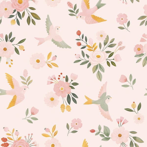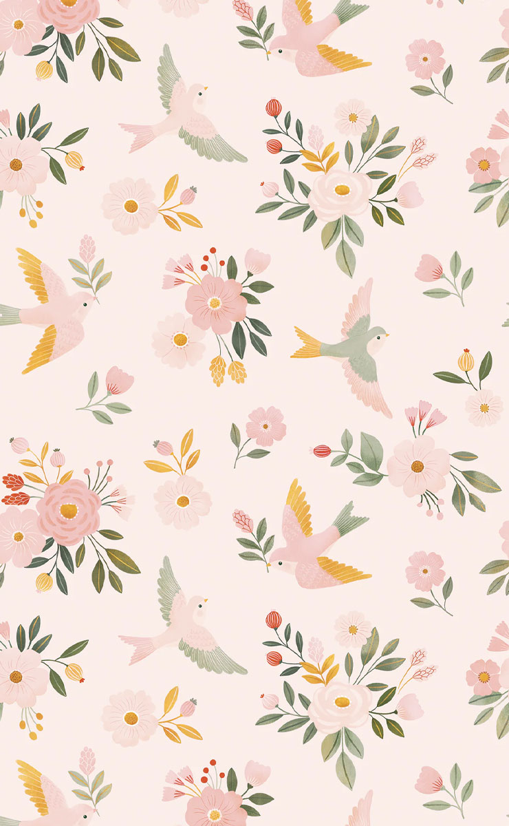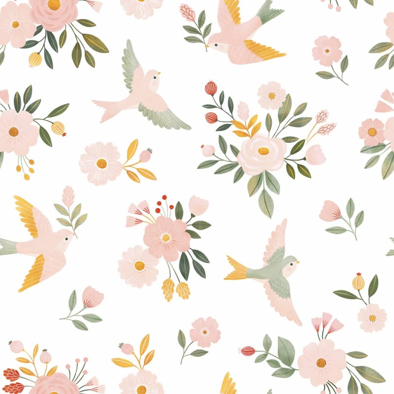 Sur le papier peint Alysse Flying, des colombes stylisées s’élèvent parmi une végétation florissante et graphique. Le motif floral et animalier, traité avec une touche ludique, insuffle une douceur aérienne au décor. Chaque plume, chaque feuille, naît d’une illustration soignée et lisible. Ce modèle reflète la sensibilité créative de Lilipinso, dans un esprit à la fois poétique et maîtrisé.