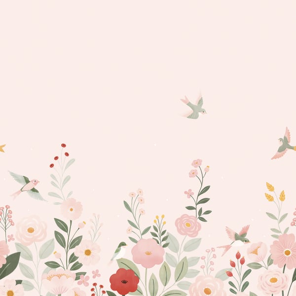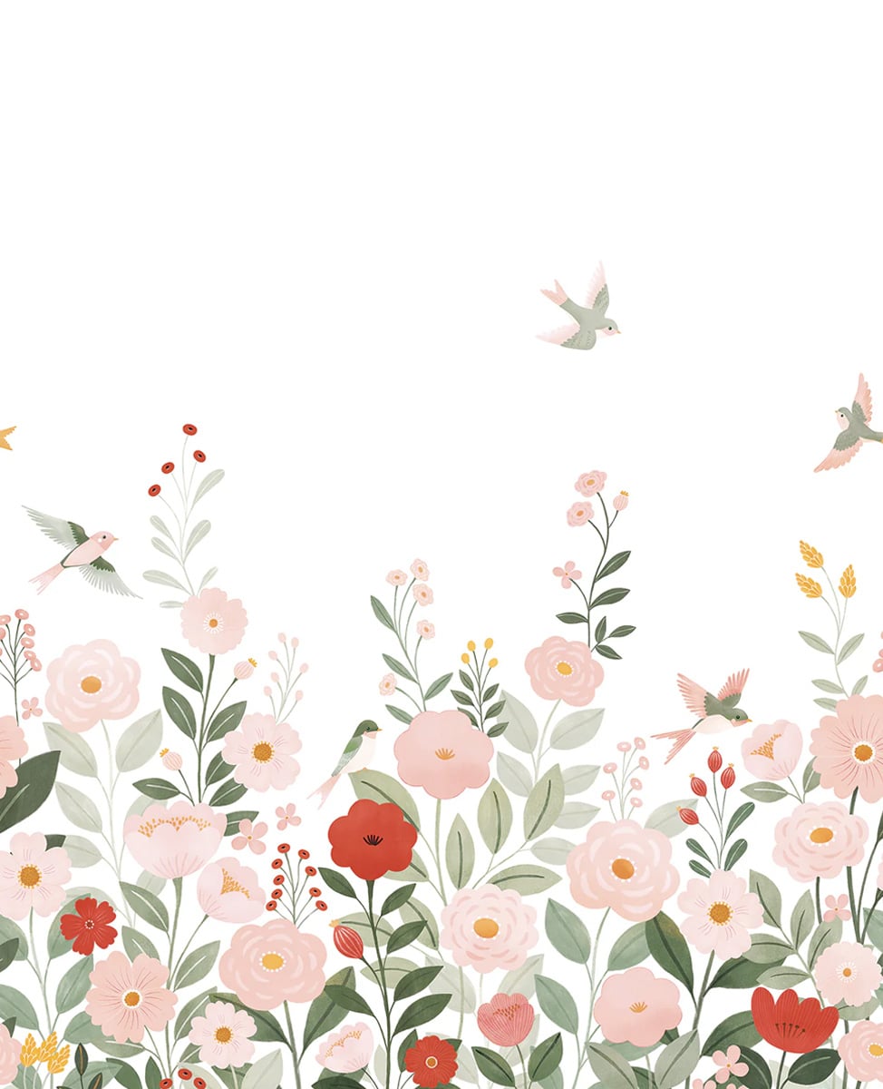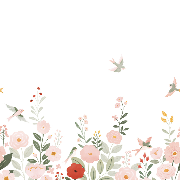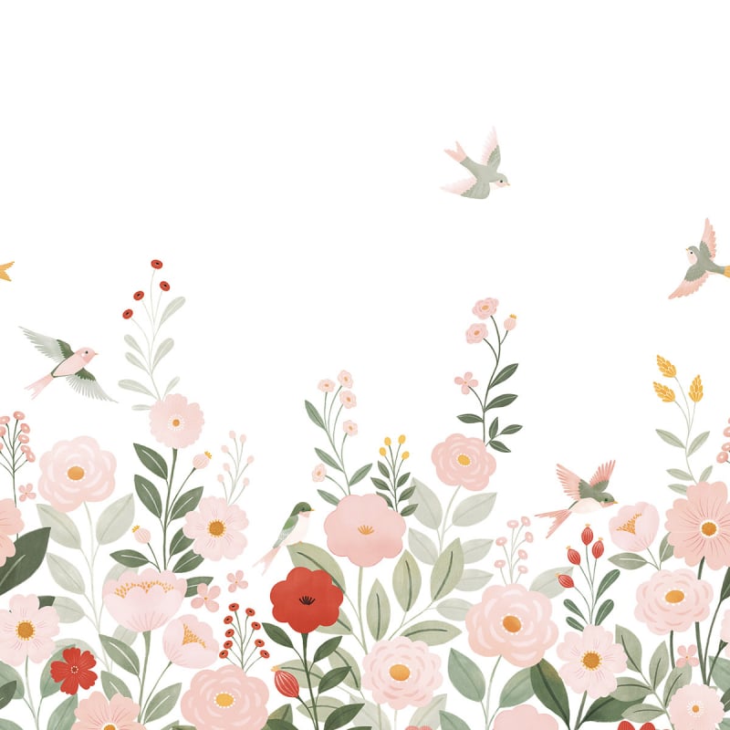 Avec Alysse XL, Lilipinso transforme le mur en un décor empreint de douceur. Ce papier peint panoramique met en scène un paysage stylisé, ponctué de fleurs aux formes simples et aux feuillages généreux. De petits oiseaux en vol instaurent une sensation de mouvement et de légèreté à l'ensemble. Ce motif floral suggère un jardin tranquille, où chaque élément reste figé dans un équilibre subtil.