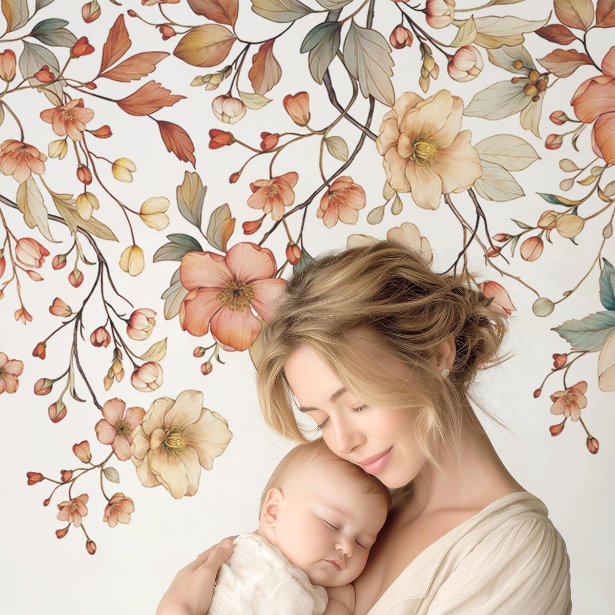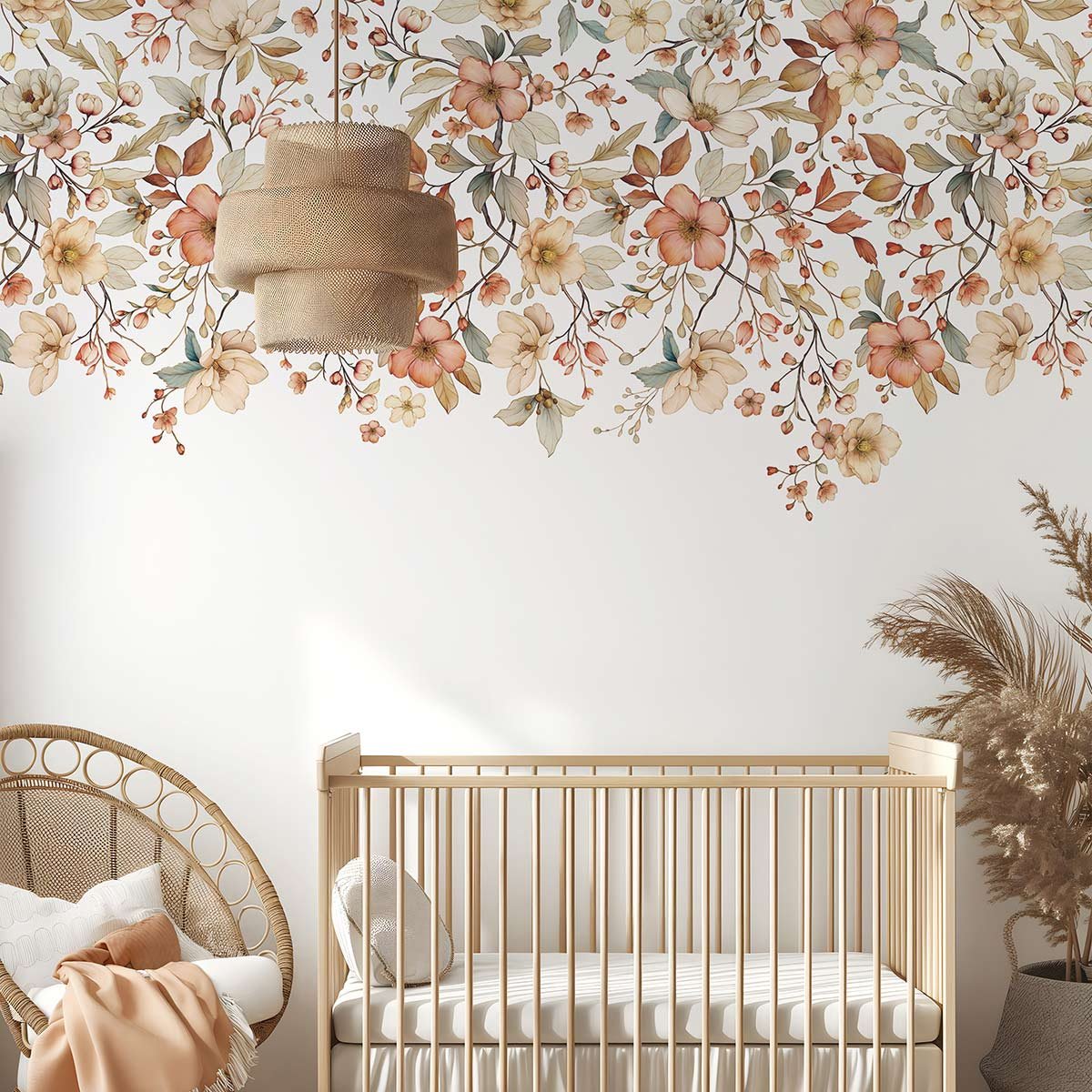 Le papier peint panoramique Louison XL de Lilipinso est orné d’un motif floral illustré avec finesse dans un style aquarelle. Les fleurs tombent en cascade depuis la partie haute et révèle un fond épuré sur le bas du décor. Chaque tige, chaque pétale, se détache avec la précision d’un geste minutieux. La composition suggère un jardin suspendu, où la nature s’immobilise dans une légèreté silencieuse.