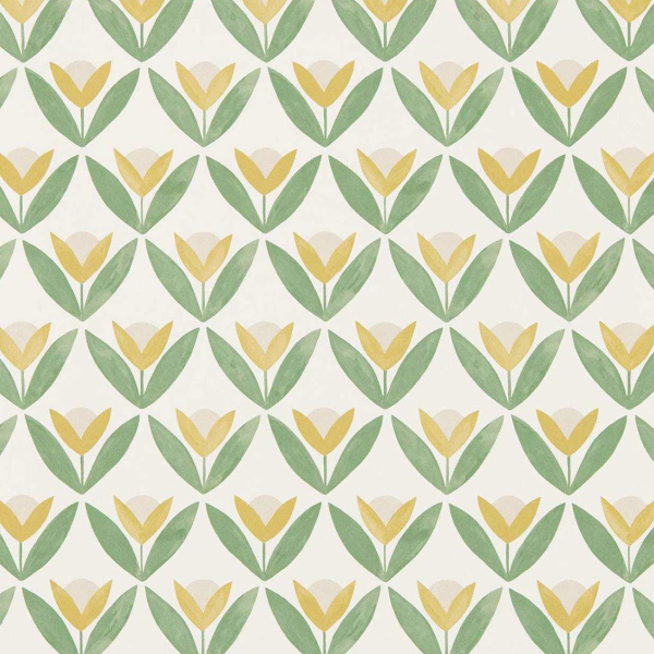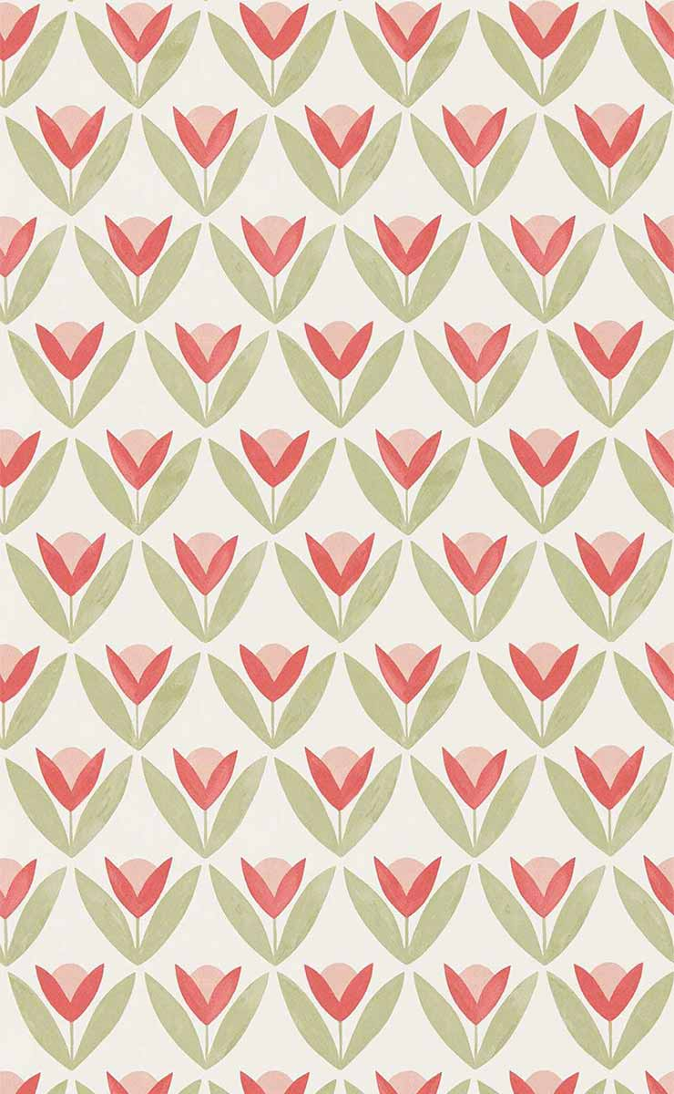 Le papier peint Tulip Trellis déploie une partition florale où chaque tulipe semble éclore au rythme d’une géométrie bien ordonnée. Alignées avec précision, les fleurs s’élèvent entre deux feuilles, formant un motif répétitif structuré. Le dessin adopte un style naïf, avec un effet légèrement aquarellé qui adoucit la composition. Ce décor mural, signé Scion, se distingue par la simplicité maîtrisée de ses formes.
