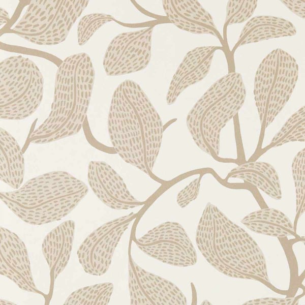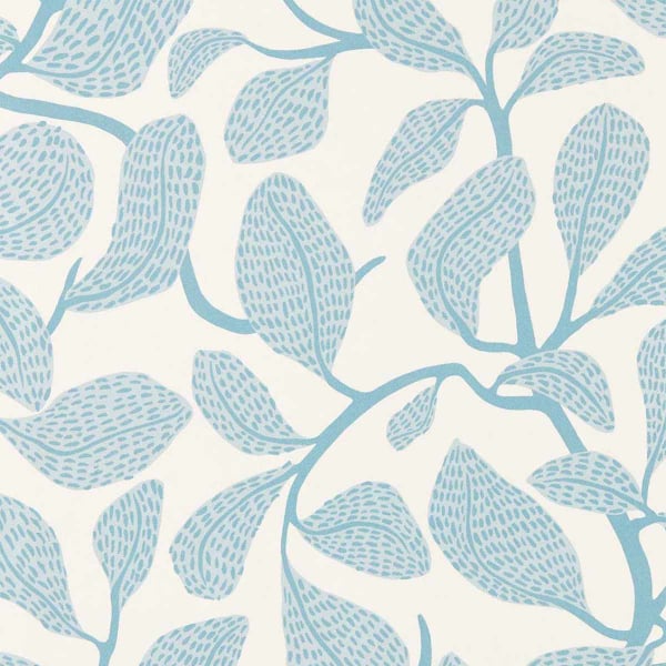 Des branches sinueuses s’élèvent et s’étirent sur le papier peint Sweet Bay, portant des feuilles allongées et stylisées. Chaque feuille est recouverte de petits traits parallèles, donnant une texture graphique et rythmée à l’ensemble. Les détails semblent issus d’un croquis spontané. Ce décor évoque une nature épurée, traduite avec finesse par Scion.