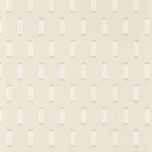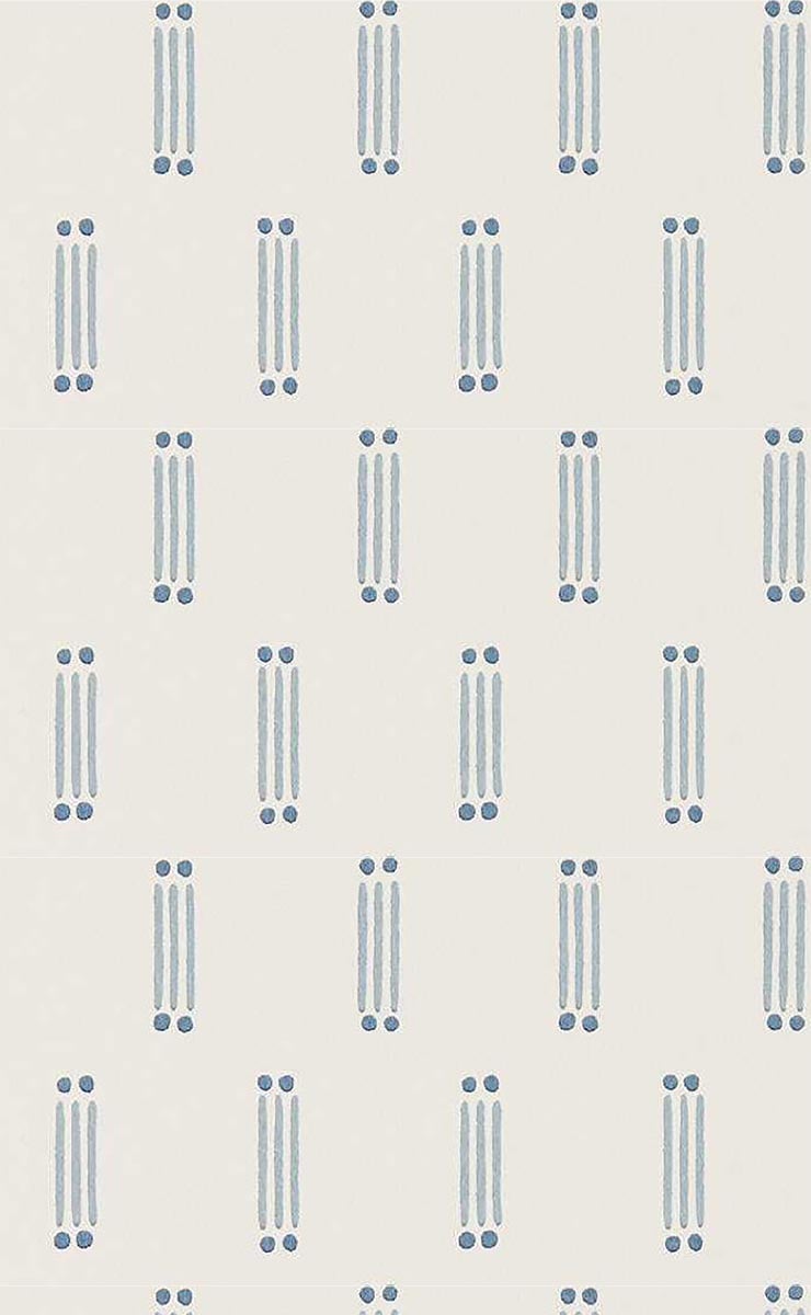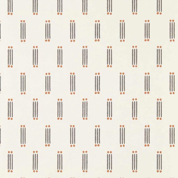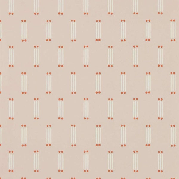 Une trame minimaliste se déploie sur le papier peint Matchsticks, signé Scion. Le motif géométrique suit un agencement régulier de figures verticales. Chaque élément se compose de trois traits parallèles ponctués de deux petits points circulaires. Les formes rappellent des allumettes figées dans un mouvement simple et graphique.