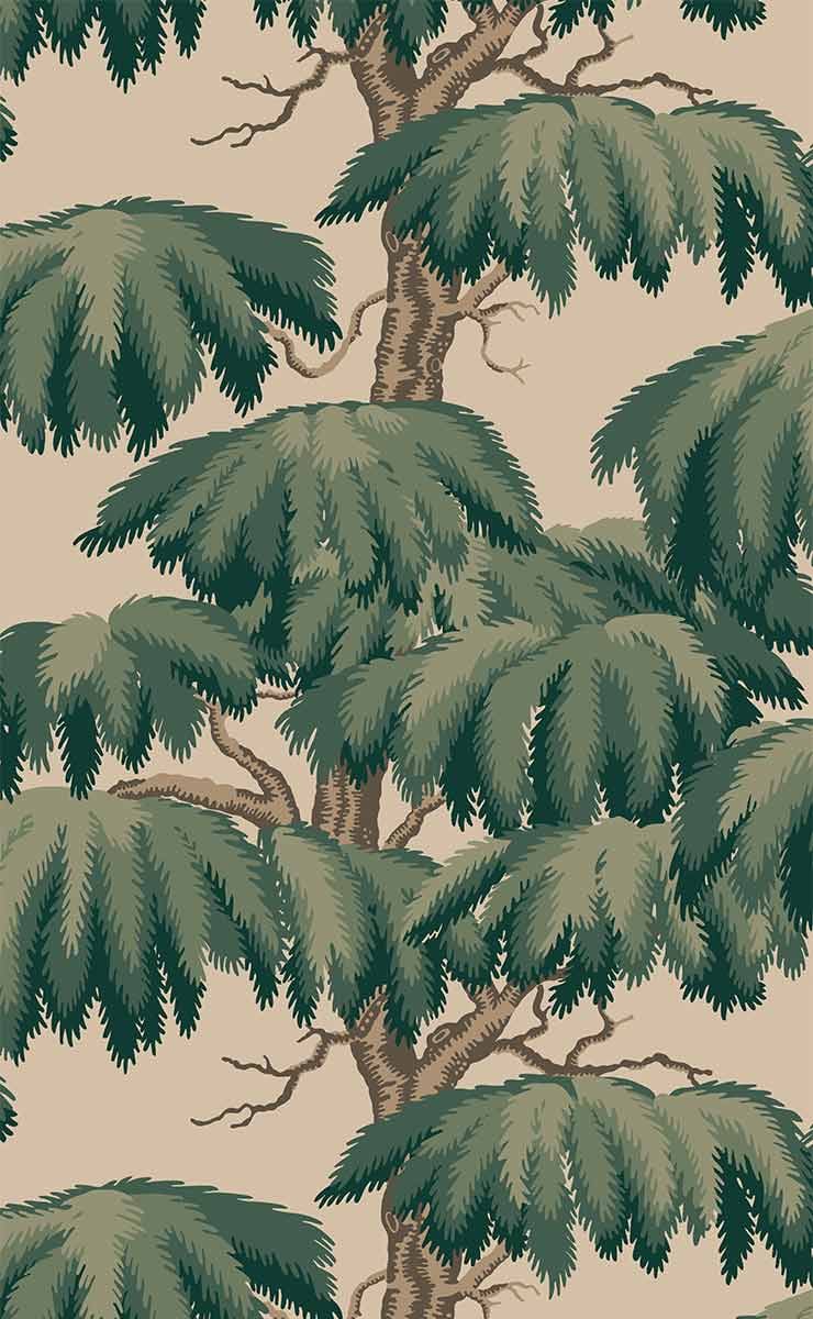 Avec Alba, le papier peint se transforme en forêt onirique. De hauts pins parasols aux frondaisons amples se dressent dans un paysage apaisant, comme figés dans un souffle d’air. Le motif végétal stylisé repose sur un jeu de volumes et de dégradés qui suggère la souplesse des feuillages. Sandberg imagine ici un tableau vertical qui capte la douceur d’un horizon serein.
